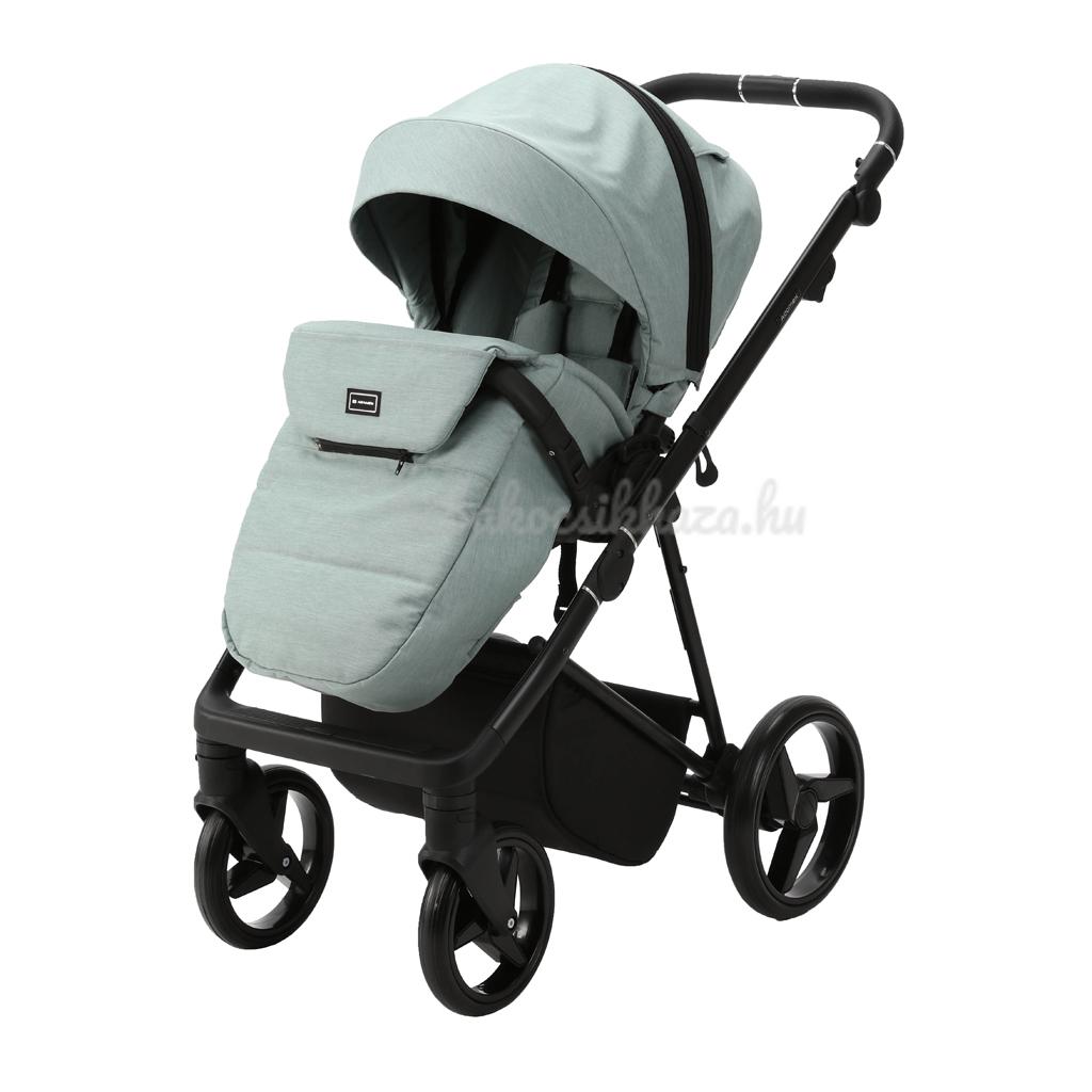 Babahordozó (fekete színben): Új típusú COSMO i-Size babahordozó 40 cm-től 87 cm-ig vagy 0-13 kg-os súlyig (kb. 1 éves korig) használható. Megújult kivehető frottír extra újszülött szűkítőbetét és deréktámasz garantálja a baba helyes pozícióját, a puha párnázás pedig növeli az utazás kényelmét. Megújult adapter segítségével egy mozdulattal rögzíthető a babakocsi vázszerkezetére és 1-1 gomb megnyomásával könnyebben levehető. Megnövelt oldal- és fejvédelem, megújult hordozófogantyúhoz kifeszíthető, könnyen állítható cipzáros kupola, 3 pontos párnázott biztonsági övrendszer központi övfeszítővel, vastag lábzsák. A 3,2 kg súlyú ülés minden nap könnyű használatot biztosít. Új típusú adapter, amivel a vázszerkezetre rögzíthető.