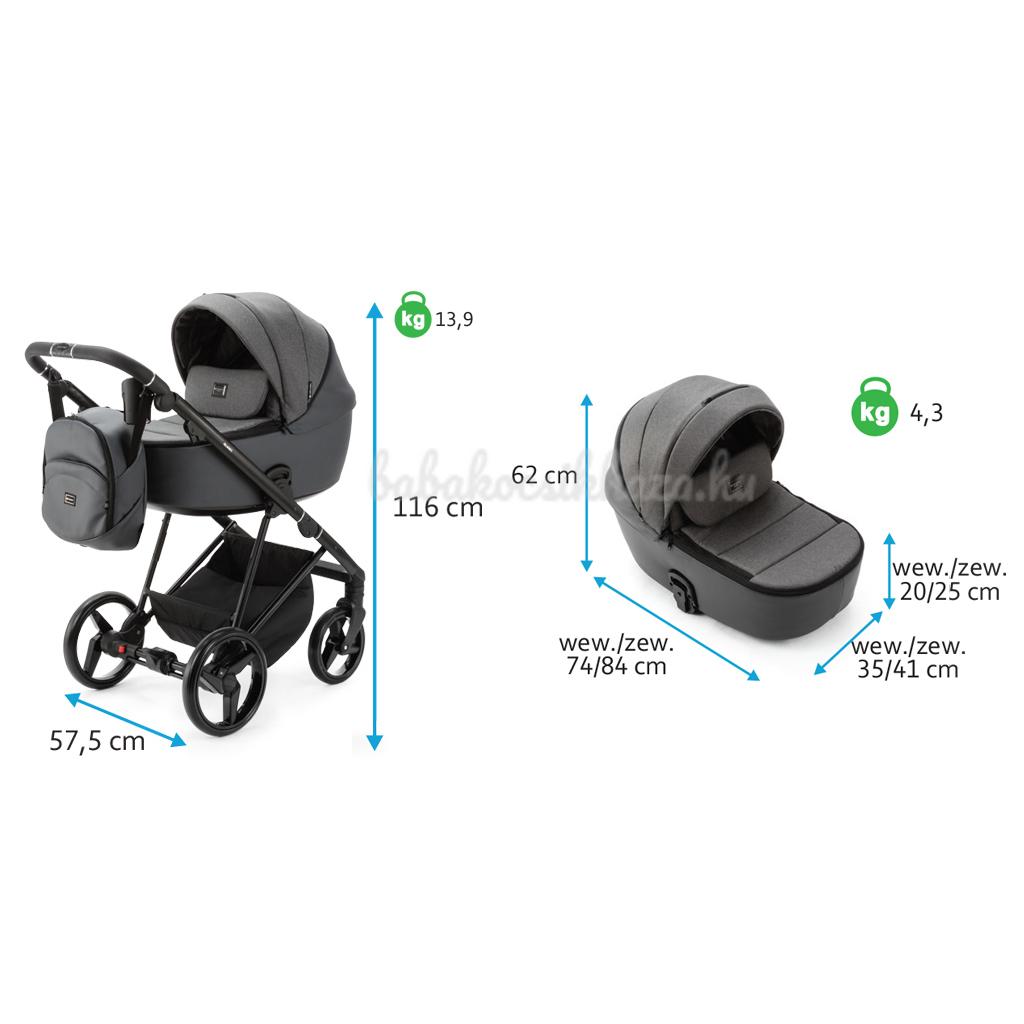 - Babakocsi súlya mózeskosárral: 13,7 kg