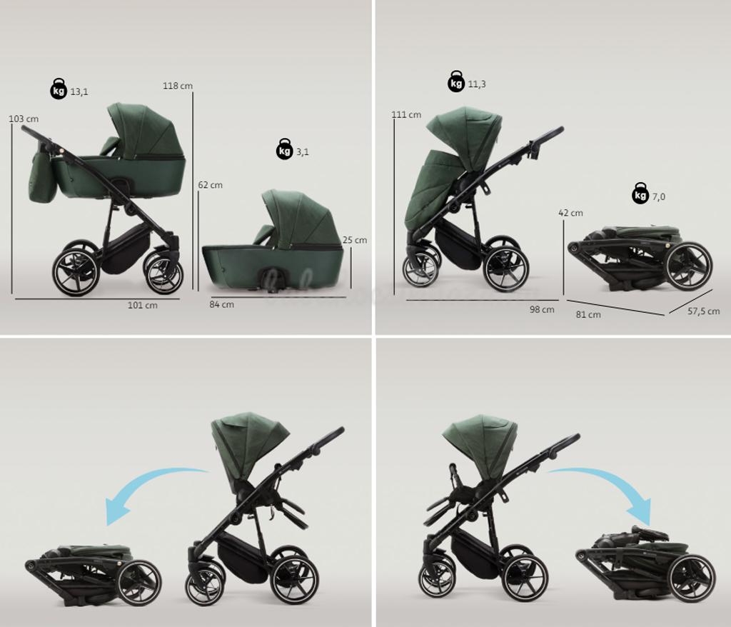 Az Adamex modern, masszív és kiválóan rugózó babakocsi. Nagy méretű bevásárlókosár, trendi mózeskosár formavilág, a textilbőr és a textil elegáns harmonizálásában. Könnyebb váz és kisebbre csukható kialakítás!