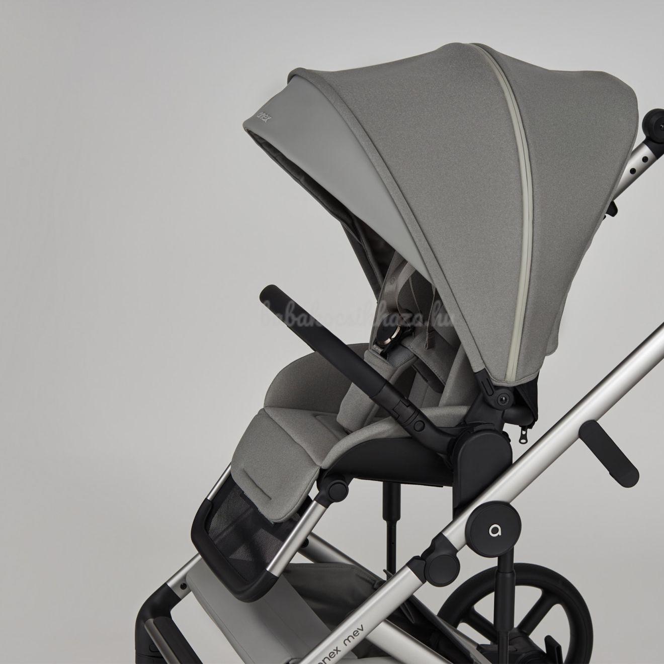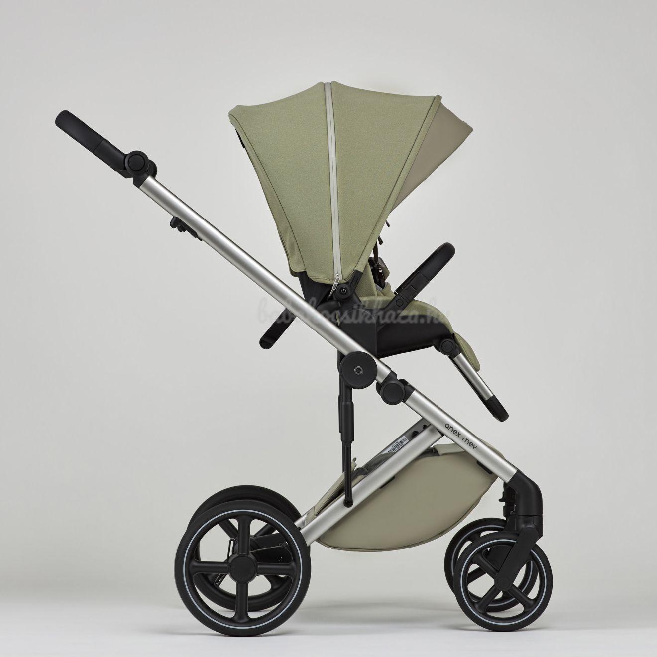 Az ergonómia és a könnyű használat jegyében készült Mev babakocsi úgy lett kialakítva, hogy elkísérje Önt az élet minden kedvenc tevékenységénél.Könnyű eltávolítás. Egyszerűen nyomja meg a gombokat, és könnyedén leveheti a tálcát vagy az ülést. Az adapterekben lévő memóriarendszer addig tartja a gombokat, amíg könnyedén fel nem emeli a kádat vagy a sportrészleget.a kád és a sportülés magasságának beállítása. A különböző magasságú családok kényelmének biztosítása érdekében a készlet tartalmaz adaptereket a kád és az ülés magasságának beállításához. Ezek lehetővé teszik, hogy szükség esetén 8,5 cm-rel megemelje a kádat és a sportszekciót. Kényelmes alvóhely. Az újszülöttek a puha természetes bambuszszövetnek és a tökéletesen sima EPP-fenéknek köszönhetően édes álmokat fognak látni a tágas kádban. A további kényelem érdekében kinyithatja a kád alján lévő szellőzőt.Tulajdonságok:Flexi kerekekPuha, könnyű és kopásálló PU kerekek, amelyeket a tartósság és a rugalmasság érdekében terveztek. A levegővel töltött csövek hiánya könnyű karbantartást és véletlenszerű sérülések elkerülését jelenti.Epp tálcaAz EPP anyag 100%-ban újrahasznosítható és könnyebb, mint a hagyományos műanyagok. Az EPP anyag szilárdsága miatt autóülések, bukósisakok és járművek gyártásánál is használják.Sorona matracA matracot egy teljesen természetes anyaggal, a Sorona-val töltik, amely kukoricából származik. Ez a matrac nemcsak légáteresztő, hanem antibakteriális és környezetbarát is. Puha és kellemes tapintású, és 100%-ban biztonságos a csecsemők számára.Újszülöttek számára kialakított pozícióKíméli a baba hátát, az ülés háttámlája leengedhető az újszülöttek számára.Nagy, kiterjesztett baldachinTartsa szárazon és védve a babát a váratlan időjárástól a baldachinnal, amely egy további részt tartalmaz, amely teljesen befedi a babátMágneses csatA vállpárnázat könnyen állítható és gombokkal rögzíthető. A mágneses zár biztosítja a heveder biztonságos pozicionálását, míg a puha vállpárnák optimális kényelmet garantálnak a biztonság veszélyeztetése nélkülEgyedi mikroklímaA kád EPP anyaga kiváló hőmérséklet-ellenállással és szigetelő tulajdonságokkal rendelkezik, így tökéletes mikroklímát teremt. Télen melegen, nyáron pedig hűvösen tartja a babát, így egész évben optimális kényelmet biztosít.X-lockAutomatikus biztonsági rendszer biztonságosan a helyén tartja a keretet, és megakadályozza a véletlen összecsukódást.SzövetvédelemNem kell aggódnia az eső vagy a nap miatt - a babakocsi vízlepergető bevonattal rendelkezik, hogy szárazon tartsa, és UV 50+ technológiával véd a naptól.Kényelmes megállásA babakocsi ergonomikus fékrendszerének köszönhetően könnyen megállítható.Levehető fogantyúA babakocsi fogantyúját könnyen, egy kézzel rögzítheted és leveheted, így gyorsan és egyszerűen fel- és leveheted az útról.Easy lockAz első kerekek rögzítő rendszere lehetővé teszi, hogy a kerekeket egy gombnyomással egy pozícióban tartsd.Anti-wobbleAz anti-wobble rendszer megakadályozza a kerekek rezgését, amikor a babakocsi mozgásban van, így biztosítva az egyenes és sima utazást.Comfort ergo designA babakocsit olyan ergonómiai elvek szerint tervezték, amelyek a szülő és a gyermek kényelmét és kényelmét helyezik előtérbe a teljes utazás során a csecsemőkortól négyéves korig. Az átgondoltan kialakított váz és ülés biztosítja a gyermek könnyű elérését, miközben a szülőknek bőséges helyet biztosít a járáshoz.Műszaki adatok- Méretek kibontva (tálcával és magassági adapterekkel) : 106,5 x 59,5 x 123,5 cm- Méretek kibontva (tálcával és magassági adapterek nélkül): 106,5 x 59,5 x 115 cm- Kihajtott babakocsi méretei (üléssel és magassági adapterekkel): 106,5 x 59,5 x 114 cm- Kihajtott babakocsi méretei (üléssel és magassági adapterek nélkül): 106,5 x 59,5 x 109 cm- A kád súlya: 3,3 kg- Az ülés súlya: 3,2 kg- A babakocsi súlya: 10,5 kgA gyermek életkora és súlya- Ajánlás: 0+- A gyermek maximális súlya a kádban: 9 kg- A gyermek maximális súlya az ülésben: 22 kgA váz- Az összecsukott váz méretei (üléssel): Kerékméret: 30,5 x 59,5 x 74,5 cm- Első kerékméret: 20 cm- Hátsó kerékméret: 27 cm- Kerék anyaga: PU- Alváz anyaga: alumínium- Fogantyú: állítható magasságú ökobőrből- Kosárkapacitás: max. 10 kgKosár- Belső méretek: 79 x 33 x 15 cm- Védőtető: állítható- Matrac: kukoricából nyert, teljesen természetes Sorona anyaggal töltve. Ez a matrac nemcsak légáteresztő, hanem antibakteriális és környezetbarát is. Puha és kellemes tapintású, és 100%-ban biztonságos a gyermekek számára.- Anyaga: ökobőr - poliészter- Szellőzés a kád alján és a baldachinbanSportrészleg- Belső méretek: 32 x 41 x 50 cm- Lábtartó: állítható- Baldachin: állítható- Fogantyú: levehető- Anyaga: poliészter- Belső hevederek: 5 pontos biztonsági rendszer mágneses csattalMelléklet: hordozóágy, sportrészleg, booster adapterek, stílusos hátizsák, esővédő, szúnyogháló, kormányAnex babakocsik az európai szabványoknak megfelelően teszteltek és tanúsítottak. Számos díjat nyertek, mert keményen dolgoznak azért, hogy a babakocsik megfeleljenek a biztonságra, stabilitásra és tartósságra vonatkozó összes követelménynek.A Mev megfelel az új EN 1888-1:2018+A1:2022 / EN 1888-2:2018+A1:2022 szabványnak, és 22 kg-ig (4 éves korig) gyermekeknek készült.