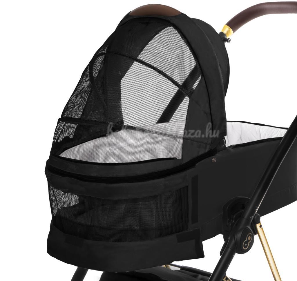- extra jól párnázott, nagyméretű műanyag oldalú mózeskosár állítható háttámlával, lábzsákkal