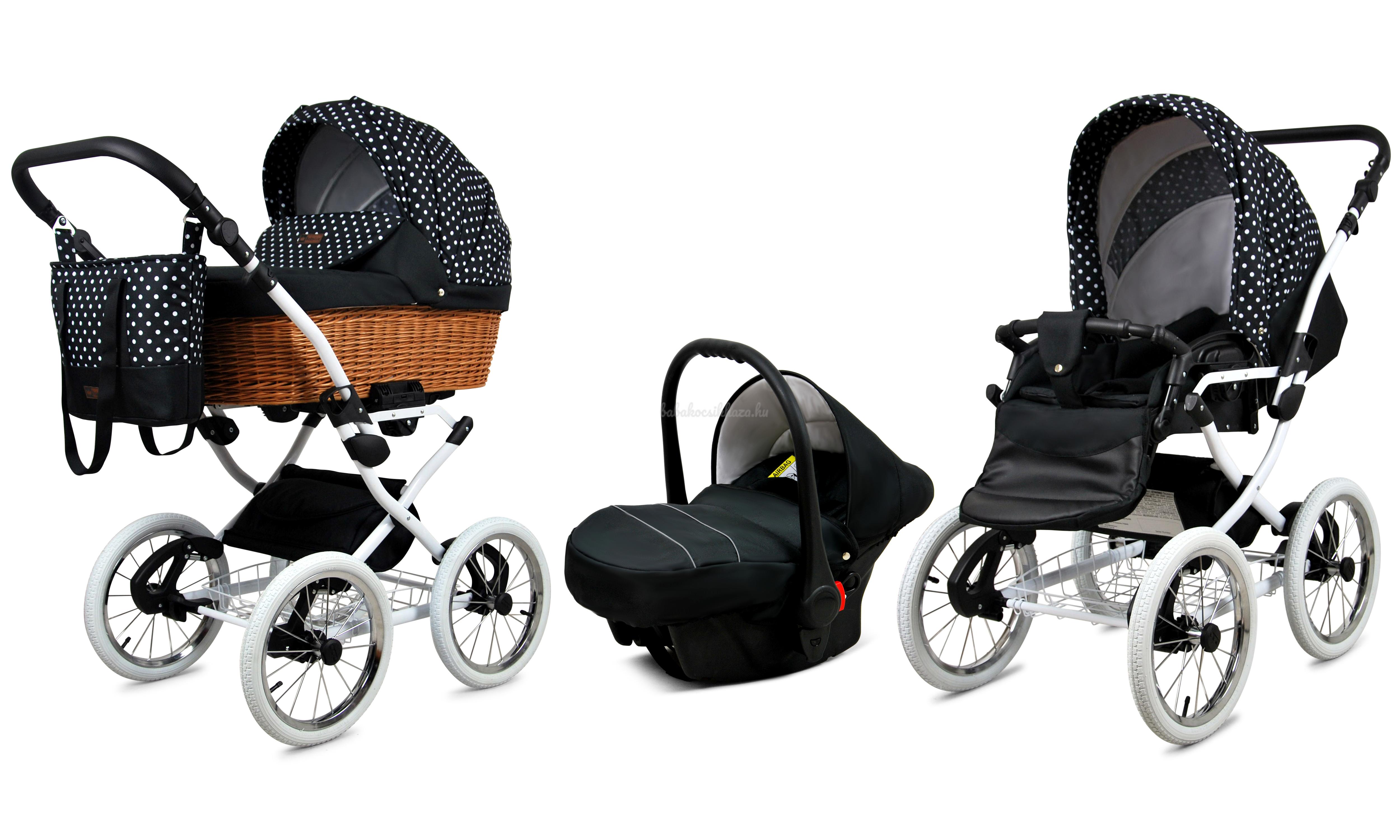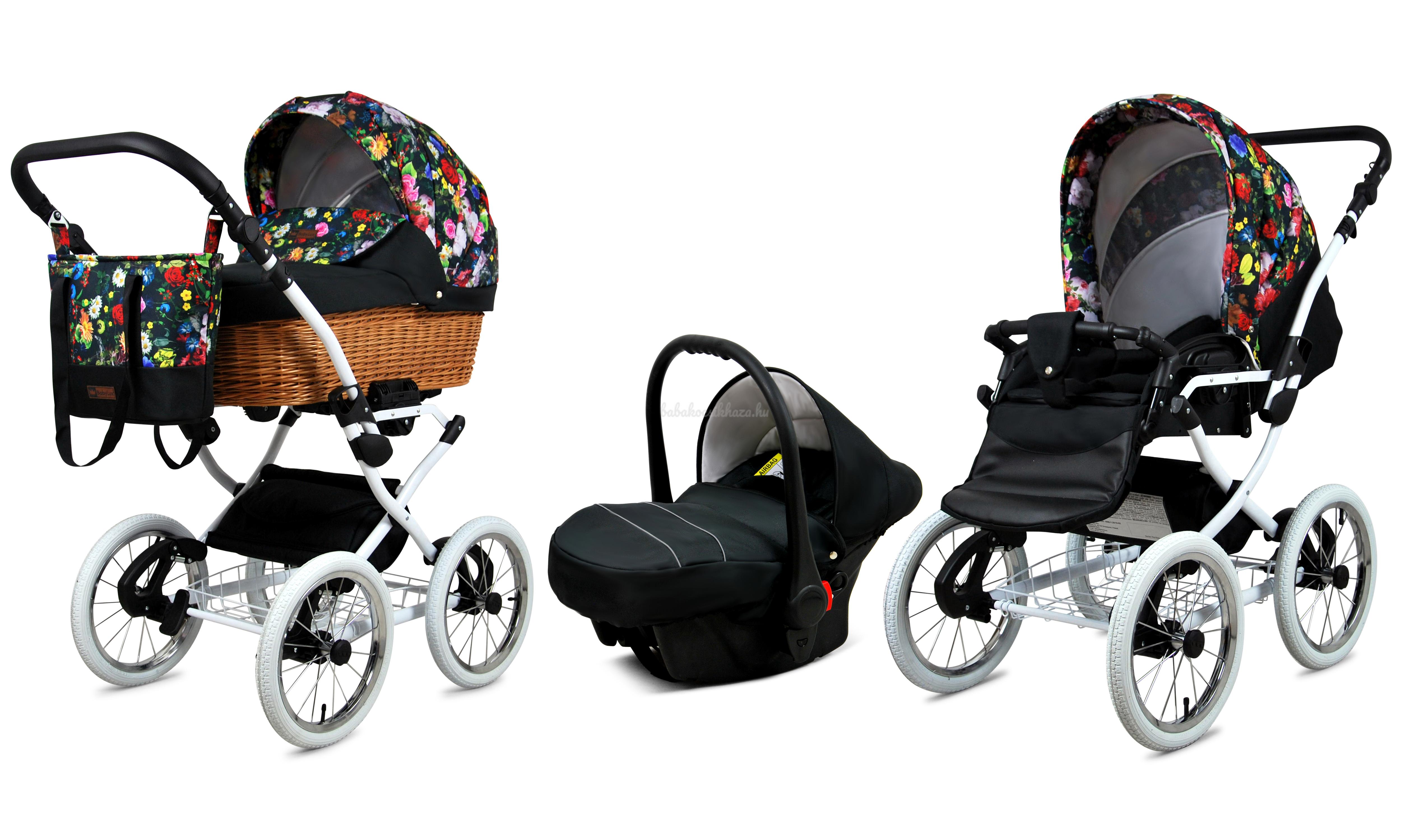 - adapter segítségével egy mozdulattal rögzíthető a babakocsi vázszerkezetére