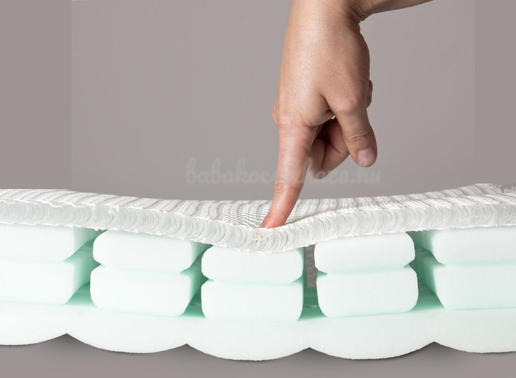 Innovatív felső réteg a matracnak, ami „légzsákhoz” hasonló 3D szálakból készült, amely folyamatos levegőcirkulációt biztosít közvetlenül a gyermek teste alatt