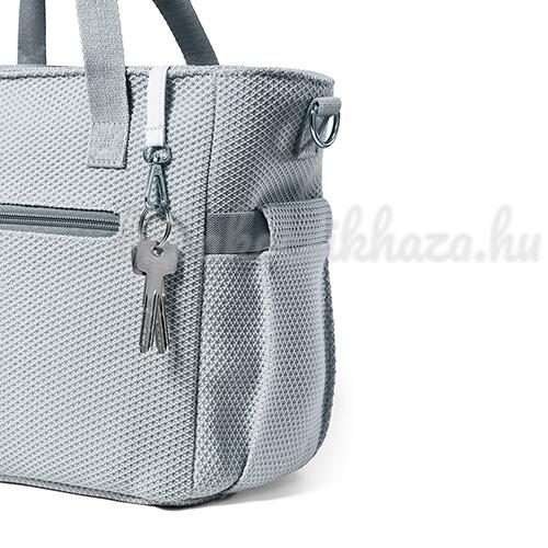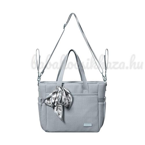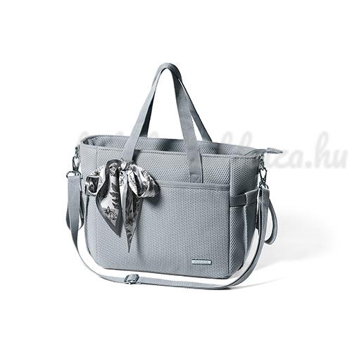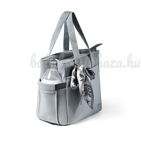 A táska hosszú pánttal rendelkezik, így kényelmesen hordható vállon. Az ügyes tartók segítségével könnyen rögzítheti a babakocsihoz vagy kézben tarthatja.