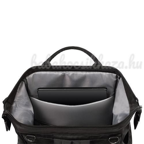 12 zseb, köztük szigetelt a palacknak, vízálló a nedves dolgoknak és speciális hely a tabletnek vagy laptopnak.