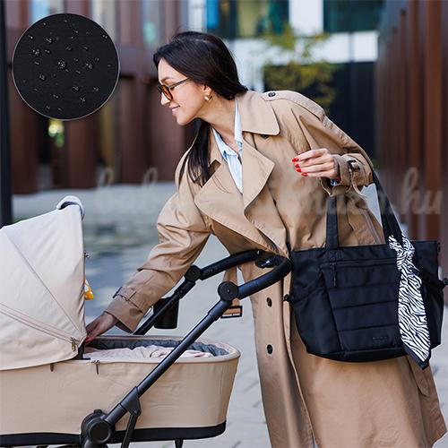 Je veľká a priestranná, ideálna na nosenie bábätka aj dieťaťa. Má 10 vreciek, pútko na kľúče a prebaľovaciu podložku, čo vám umožní múdro usporiadať interiér. Je vyrobená z nepremokavého materiálu, venovali sme pozornosť detailom. Môžete ju zavesiť na kočík, nosiť v ruke alebo ju nosiť cez rameno.