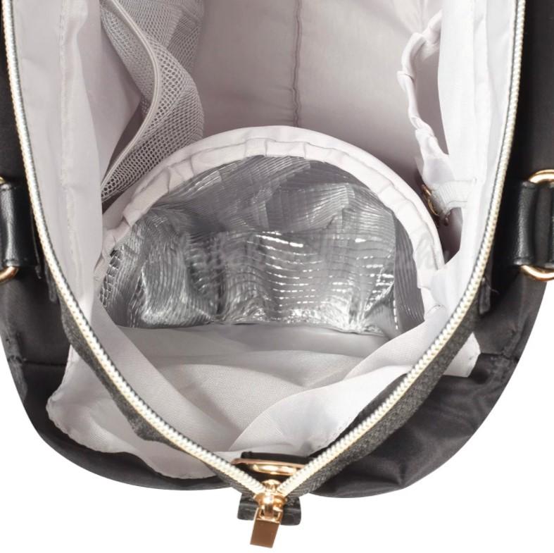 Taška je vybavená šnúrkou, ktorá vám umožní ľahko nájsť kľúče. Nájdete tu aj vrecko na zips s rýchlym prístupom, ktoré pojme telefón. Vonkajšie bočné vrecká slúžia na praktické uloženie fliaš detskej výživy a nápojov. Funkcia tepelnej izolácie vrecka umiestneného vo vnútri tašky vám však umožňuje udržať požadovanú teplotu jedla.