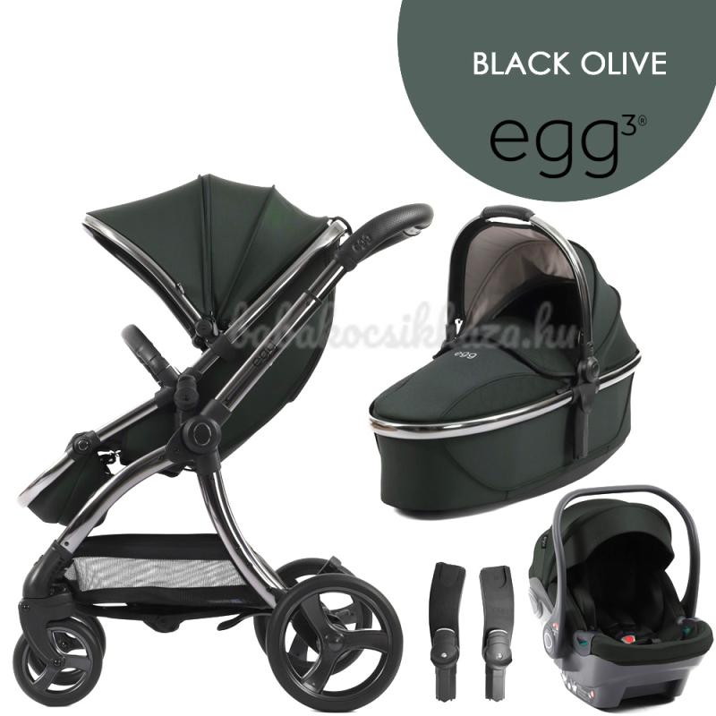 Az egg3® váz egy kézzel összecsukható, kompakt, és összecsukva önállóan is megáll, a talajon fekő fogantyúval. Nagy kerekekkel, géles gumiabroncsokkal és egyedi tojás alakú sportrésszel rendelkezik. Az egg3® babakocsit kényelmes utazásra tervezték, kiváló kezelhetőséget és fokozott tartósságot kínál, a Tru-Ride® technológiának köszönhetően pedig többféle terepre is alkalmas.