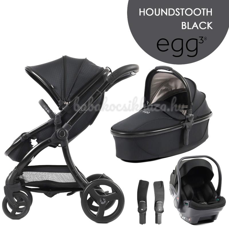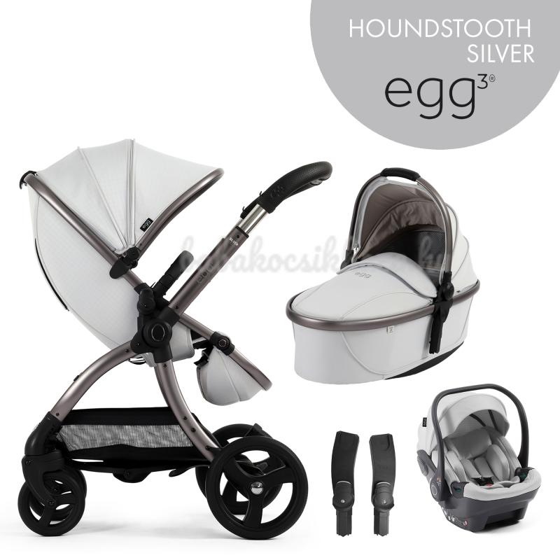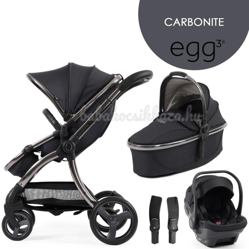 Ikrek számára az egg3® babakocsi tandem adapterek segítségével iker- vagy testvér babakocsivá alakítható. Háziállattal rendelkező családok számára egg® Kisállatkosár is kapható (amely bevásárláshoz is használható). Ezek a kiegészítők külön megvásárolhatók az Ön igényei és preferenciái szerint. Főbb jellemzők - egg3® babakocsinál: Extra nagy tető UPF 50+ védelemmel, szellőzőablakkal felszerelve; Öt pozícióban állítható fogantyúmagasság - 99 és 111 cm között; Luxusos, kézzel varrott műbőr fogantyú; Ötpontos biztonsági öv az egyszerű, egyetlen húzással történő beállításhoz; Levehető fogantyú az ülésben; Öt pozícióban állítható lábtartó; Rejtett tárolóhely a lábtartóban; A rovarháló a sportrészre, Tru-Ride® technológiájú gumiabroncsok gyorskioldó rendszerrel;