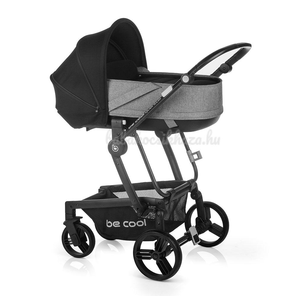 A Be Cool kínálatának felsőkategóriás terméke, csúcsminőség. Az eloxált, karcmentes alumínium váz egyedi felépítése és összecsukása igazán figyelemreméltó. A szabadalmaztatott, innovatív összecsukási rendszer 30%-al csökkenti a babakocsi méretét, így nem kell aggódni a tárolás, szállítás miatt.