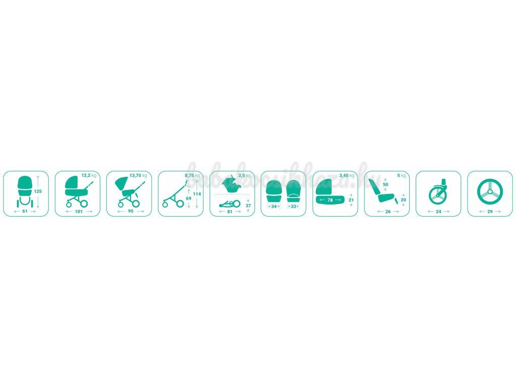 - Tartozékai: lábzsák, esővédő fólia, szúnyogháló
