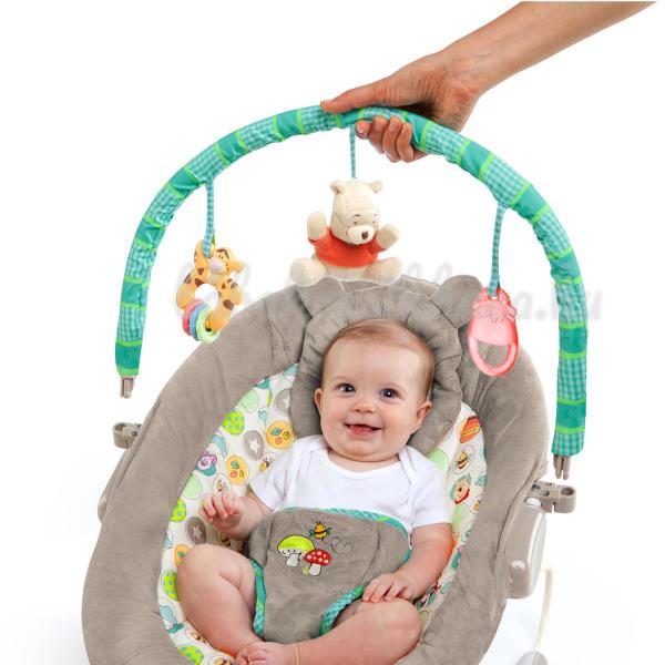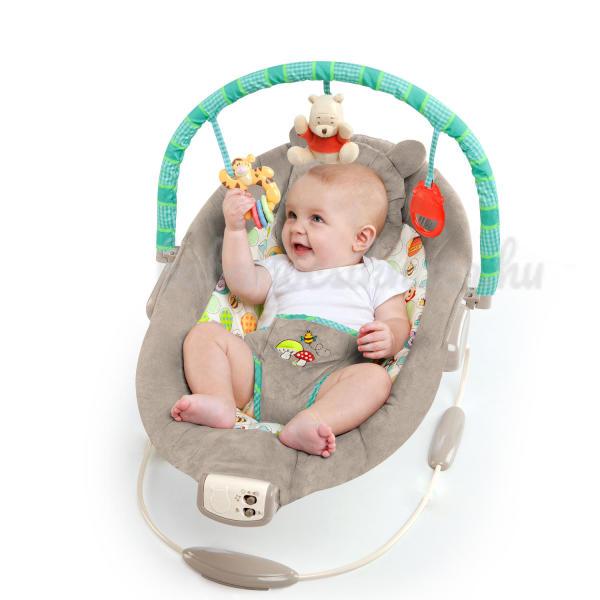 HU Description A puha, luxuskivitelű anyagoknak köszönhetően a baba imádni fogja az időt ebben az átgondoltan kialakított pihenőszékben tölteni. A Bright Starts Disney Baby Winnie the Pooh Dots & Hunny™ pihenőszék eltávolítható fejtámlával rendelkezik az extra támaszért, rezgésekkel és hét szórakoztató dallammal. A pihenőszék olyan játékokkal szórakoztatja a babákat, mint a mézesbödön, a plüss Micimackó és a gyűrűkkel ellátott Tigris.