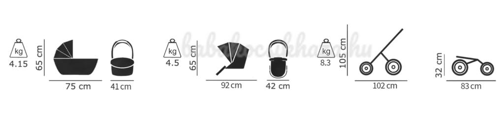 - adapter segítségével egy mozdulattal rögzíthető a babakocsi vázszerkezetére
