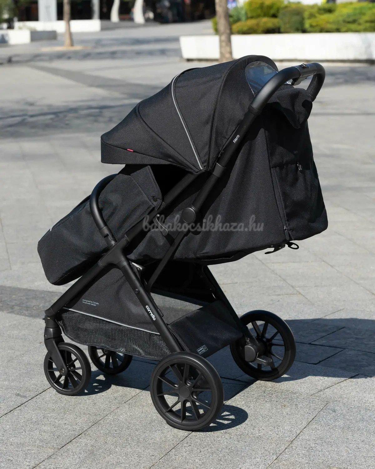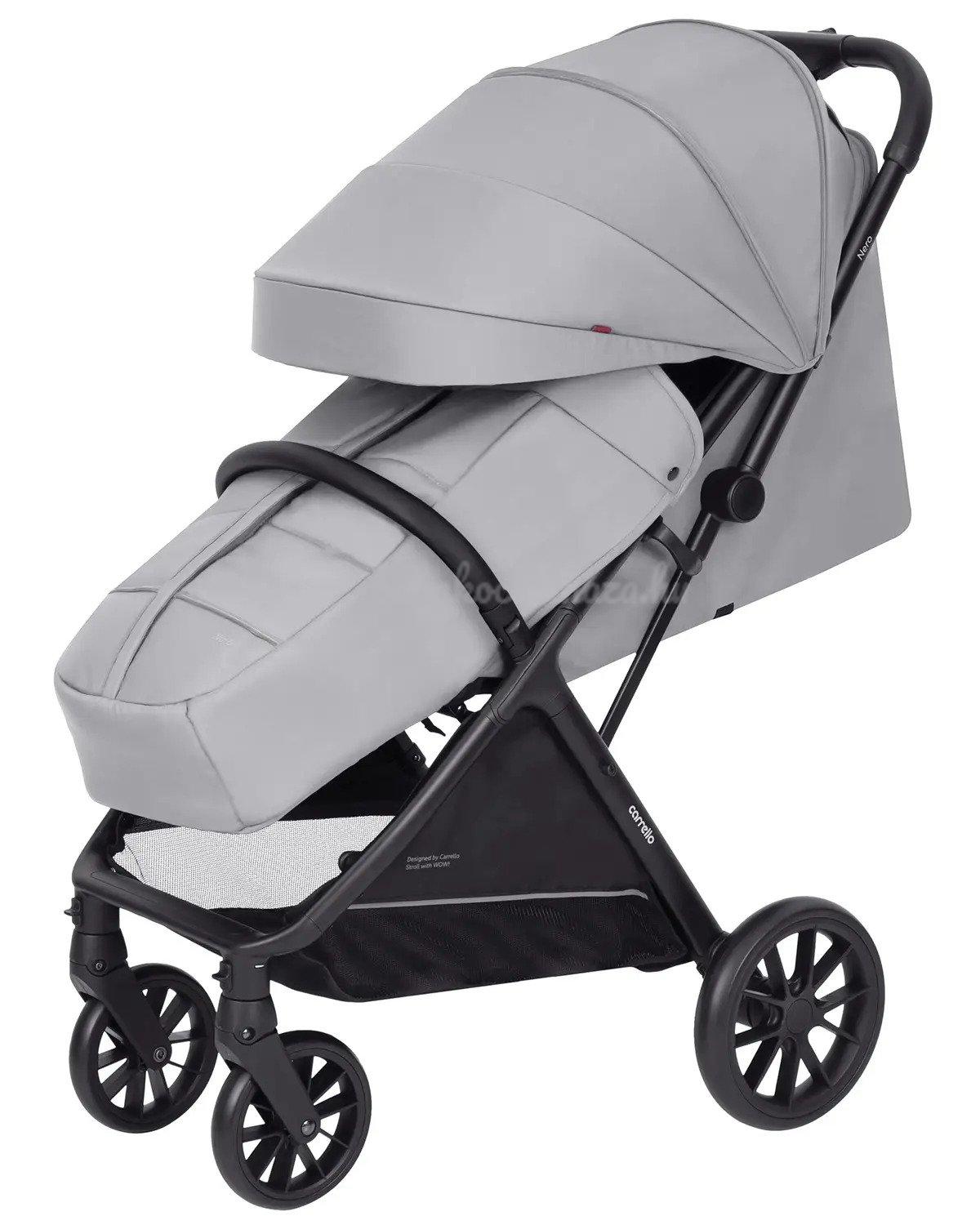 Az egész évben használható Carrello babakocsi optimális méretekkel rendelkezik a gyermek pihenéséhez, valamint a nehéz útszakaszok leküzdéséhez. A tető kétrétegű (600D), vízálló és UV védelemmel (UPF50+) rendelkezik. Valamint rendelkezik egy nagy, kihúzható hosszabbított résszel a bővítés érdekében, egy szellőző ablak is megtalálható, melyet a forró hónapokban értékelni fog. A babakocsi hátulján egy kis zseb található. A háttámla majdnem teljesen vízszintes helyzetbe állítható. A lábzsák megvédi gyermekét a rossz időjárástól. Minden anyagrész levehető, ami megkönnyíti a babakocsi ápolását és tisztítását. A rugós lengéscsillapítók és a gumikerekek kellemesebbé tehetik a babakocsizást még egyenetlen terepen is.