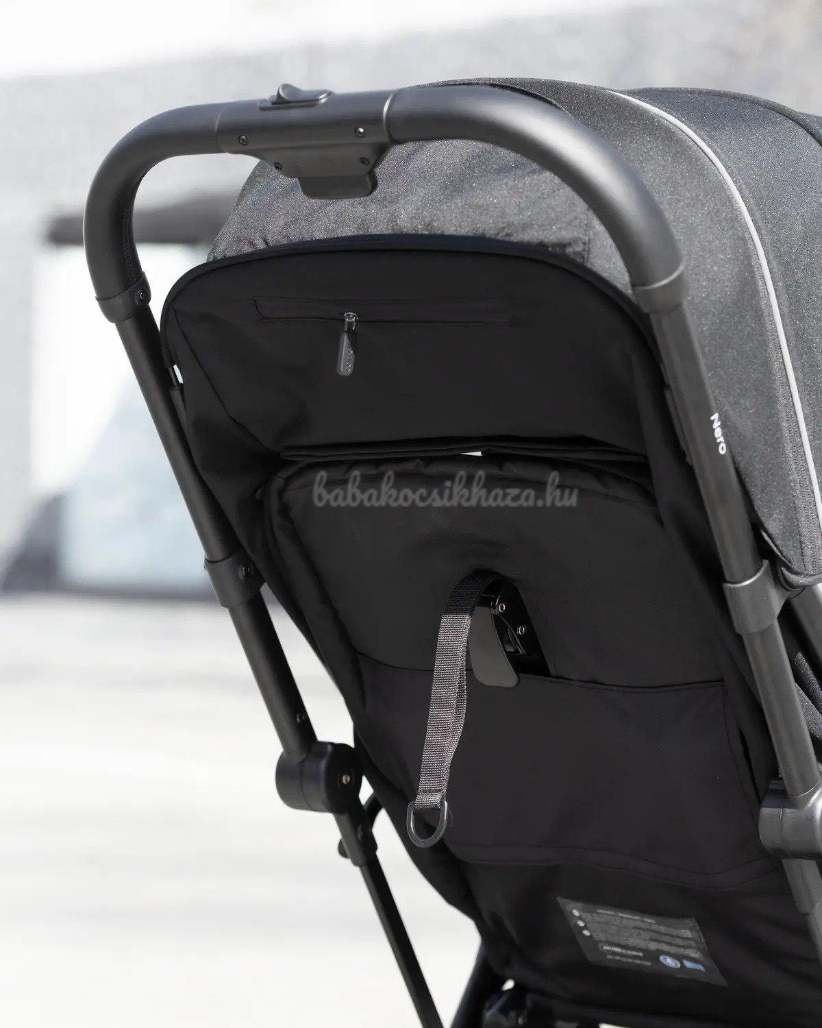 Tágas bevásárlókosár, könnyű hozzáféréssel. A babakocsi egy kézzel gyorsan összecsukható és egy kényelmes fogantyú segítségével hordozható. Összecsukva a babakocsi nem foglal sok helyet, és további támaszték nélkül is függőlegesen áll. A babakocsihoz jár: -rovarvédő háló, lábzsák, italtartó. Maximális teherbírás: 22 Kg A szétnyitott babakocsi méretei: HxSzxM: 92x56x108cm Ülőrész méretei: HxSzxMé: 92x36x22 cm A babakocsi súlya: 9,9 kg