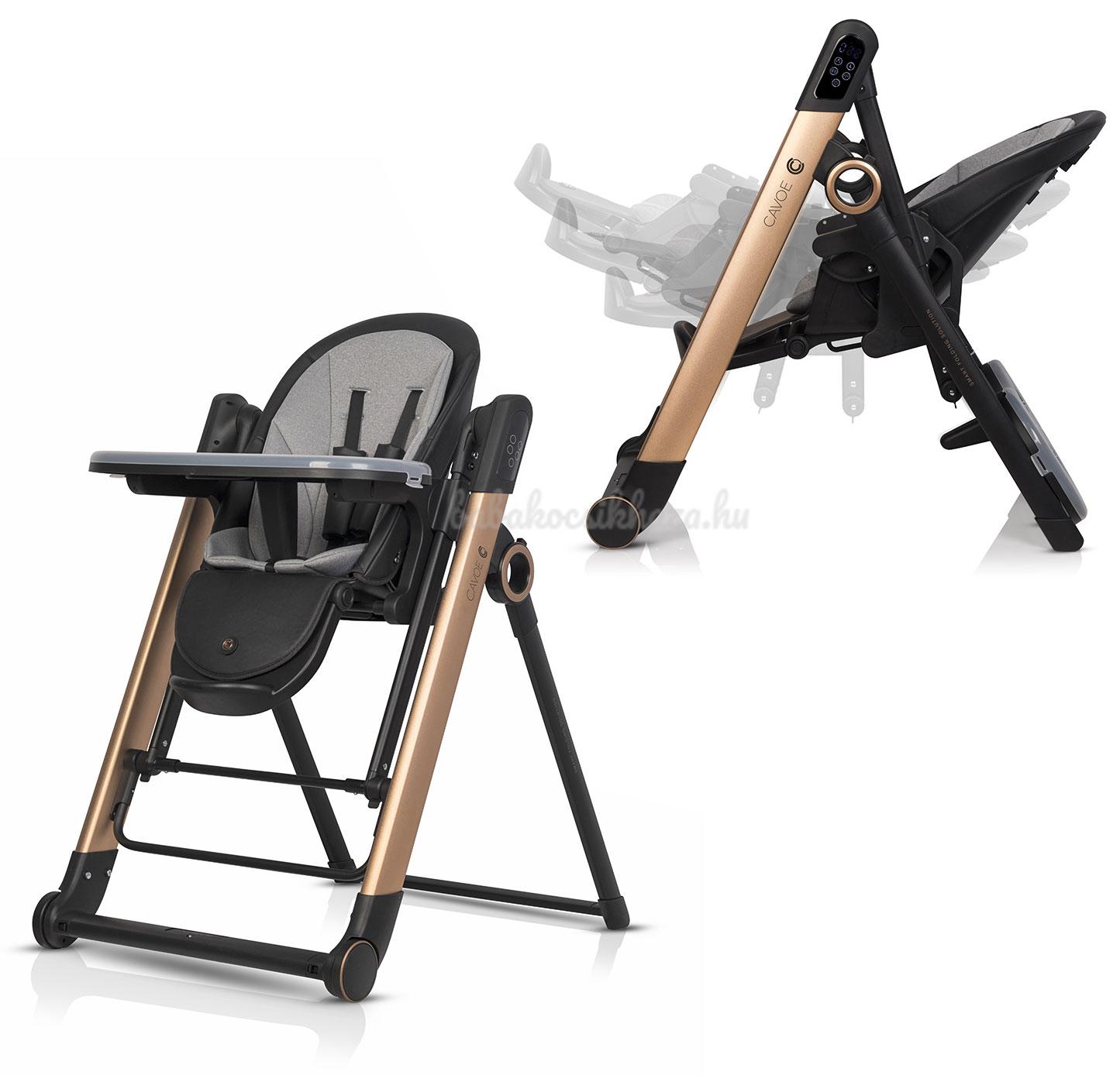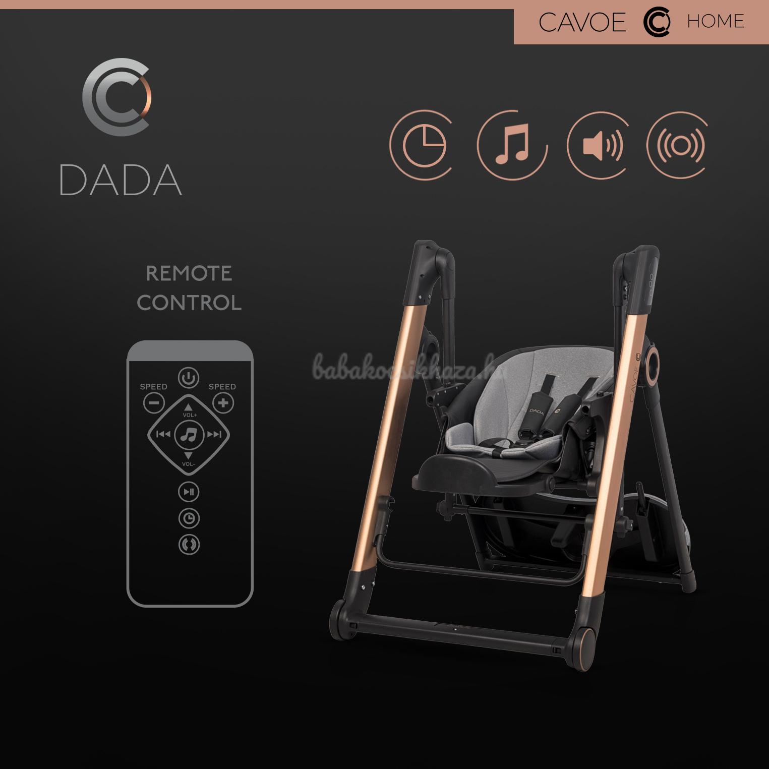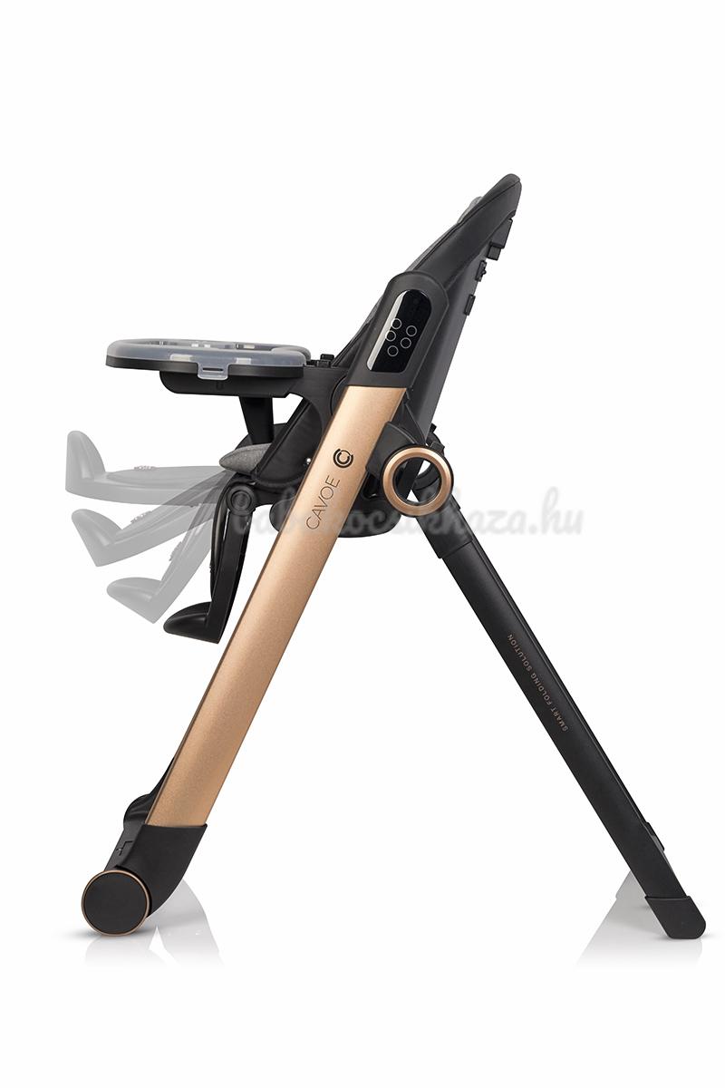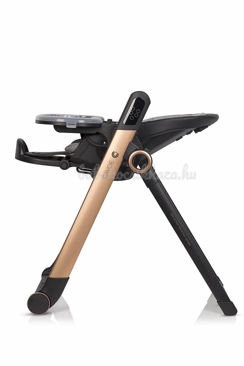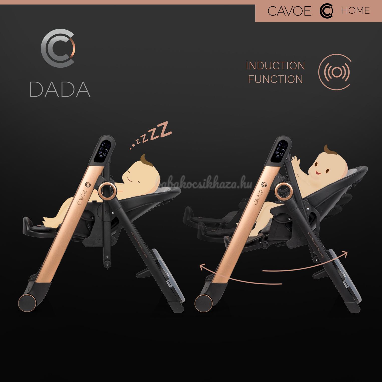 A CAVOE HOME egy otthonában használható gyermektermékekből álló sorozat. Ez a rendkívül elegáns kollekció a CAVOE márka jellegzetes stílusában készült termékeket tartalmaz. A mélyfekete és a rózsaarany színű fémes kiegészítőkkel diszkréten díszített csúcsminőségű anyagok azonban csak kiegészítik a CAVOE HOME sorozat legfontosabb erősségeit, az innovációt és a funkcionalitást. A CAVOE HOME sorozat megalkotásakor a tervezők figyelembe vették gyermeke és az Ön kényelmét is. A merész dizájn szakít az elfogadott szabványokkal, és mélyfeketét vezet be a gyermektermékekbe. A CAVOE HOME termékcsalád termékei nem csak a gyerekszobában, hanem otthona különböző helyiségeiben is használhatóak. Tökéletesen illeszkednek a modern loft stílusú belső terekbe, legyen szó étkezőről, nappaliról vagy hálószobáról. A CAVOE DADA egy innovatív multifunkcionális termék, amely a funkcionális tulajdonságokat a legmodernebb technológiával ötvözi. A DADA egyesíti az elektromos babahinta és a kényelmes etetőszék funkcióit. Ez tehát egy 2 az 1-ben SMART termék. A CAVOE tervezői a merész stílusra és a modern termékformára helyezik a hangsúlyt, így a DADA nemcsak használati funkcióval rendelkezik, hanem otthonának dísze is lehet. CAVOE DADA MINT ELEKTROMOS GYERMEKHINTA: INDUKCIÓS FUNKCIÓ - A DADA nem egy átlagos elektromos hinta. Intelligens indukciós funkcióval rendelkezik, amely automatikusan érzékeli, ha a baba alszik. A hinta automatikusan szünetelteti a hintázást, és amikor gyermeke újra felébred és elkezd mozogni, a hinta automatikusan folytatódik. Az indukciós funkciónak köszönhetően Ön és gyermeke is kipihent lesz. 5 HINTAGYORSÚJTÁS - a hinta kézi folyamatos üzemmódban 5 sebesség közül választhat. Minden gyermeknek más a dinamikája, és néha egy kicsit dinamikusabb hintára van szükség. HINTÁZÁSI IDŐ BEÁLLÍTÁSA - a hintaidő programozónak köszönhetően a DADA lehetővé teszi, hogy 3 hintaidő hossza közül egyet állítson be: 8, 15 vagy 30 perc. Természetesen a hinta folyamatosan is működhet, amíg ki nem kapcsol. VÁLASZTHAT MELÓDIÁT - A DADA hinta több kellemes, pihentető dallam közül választhat, amelyek biztosan segítenek gyermekének elaludni. A megfelelő dallam hangerejét is beállíthatja. BLUETOOTH KIJELZŐ - a Bluetooth hangszóró funkciónak köszönhetően csatlakoztathatja mobiltelefonját a DADA hintához, és bármilyen zenét bekapcsolhat. A telefonról lejátszási listákat állíthatsz be és beállíthatod a hangerőt. PILOT - a vezérlőpanel érintéssel vagy az intuitív távirányítóval is működtethető, így nem kell minden alkalommal a hinta mellé sétálnia, és nem kell kockáztatnia, hogy véletlenül felébreszti gyermekét. VEZETÉKVONALOS TÁMOGATÁS - a DADA hinta vezeték nélkül, elemekkel vagy vezetékes tápellátással, adapter segítségével működtethető. A vezeték nélküli áramellátás lehetővé teszi, hogy a hintát bárhol elhelyezhesse. CAVOE DADA MINT ETETŐSZÉK: A DADA elektromos hintaként való funkciója mellett nagyon kényelmes és rendkívül funkcionális etetőszék is. Minden lehetséges és a felhasználó által kívánt funkcióval rendelkezik, amivel egy jó etetőszéknek rendelkeznie kell. HÁTTÁJ BEÁLLÍTÁS ÜLÉSHOSSZÚÍTÁSBAN - A DADA etetőszék a piacon kapható legjobb háttámla állítási rendszerrel rendelkezik, amely üléssík-hosszabbítással van kombinálva. Ez a rendszer biztosítja, hogy a súlypont mindig ugyanazon a helyen maradjon. A piacon kapható legtöbb szék egyszerű háttámla-beállító rendszerrel rendelkezik, amely az üléshez viszonyított szög megváltoztatását jelenti, ami a súlypontot hátrafelé tolja el, és így csökkenti a stabilitást. A háttámla akár 5 különböző pozícióban is beállítható. SZINTESEN ÁLLÍTHATÓ - A DADA etetőszék akár 6 magassági beállítás közül is választhat, így biztos, hogy a szék magasságát az étkezőasztal lapjához igazíthatja, és együtt élvezheti az étkezést. KETTŐS tálca - A DADA 2 tálcával rendelkezik az ételek tálalásához. A fő tálca állítható meghosszabbítással és lépcsős biztonsági eszközzel rendelkezik. A külső tálca könnyen tisztítható műanyagból készült. Peremmel rendelkezik, hogy megakadályozza a kiömlött folyadékok kifolyását, és helyet biztosít az italok számára. Tisztításhoz gyorsan eltávolítható. NAGY KEREKEK FÉKEKKEL - Az elülső két nagy keréknek köszönhetően a szék könnyen mozgatható. A kerekek fékkel vannak ellátva, hogy biztosítsák a stabilitást a baba etetésekor. ÁLLÍTHATÓ LÁTÓALAP - A lábtartó szög- és hosszállítással is rendelkezik, így mindig megtalálja a baba magasságához tökéletesen illeszkedőt. FLATOS ÖSSZEHÚZHATÓ - A szék laposra hajtogathatóságának köszönhetően könnyedén elfér a szekrényben vagy például az ágy alatt, amikor nem használja. Ez a funkció akkor is hasznos, ha a széket autóval kell szállítani. KÉNYELMES ÉS PRAKTIKUS KÁRTYA - A kárpit külső része, amely egy kisebb gyermek számára is csökkentőbetét, puha kötött anyagból készült, praktikus melange típusú színben. A fő kárpit matt organikus bőrből készült, antisztatikus poliuretán bevonattal, amely könnyen tisztítható. Ha a CAVOE HOME termékcsalád termékeit választja, divatos stílust és innovatív technológiát hoz otthonába, hogy megkönnyítse a mindennapi gyermekgondozást. Emellett biztonságos termékeket választ egy jó hírű, minden szükséges jóváhagyással rendelkező gyártótól. CAVOE HOME - a gyermektermékek új stílusa az Ön otthonában. SPECIFIKÁCIÓK: - Elektromos hinta 9 kg-ig terjedő gyermekek számára vagy etetőszék gyermekeknek és 15 kg-ig, - Innovatív indukciós funkció, amely érzékeli a baba aktivitá