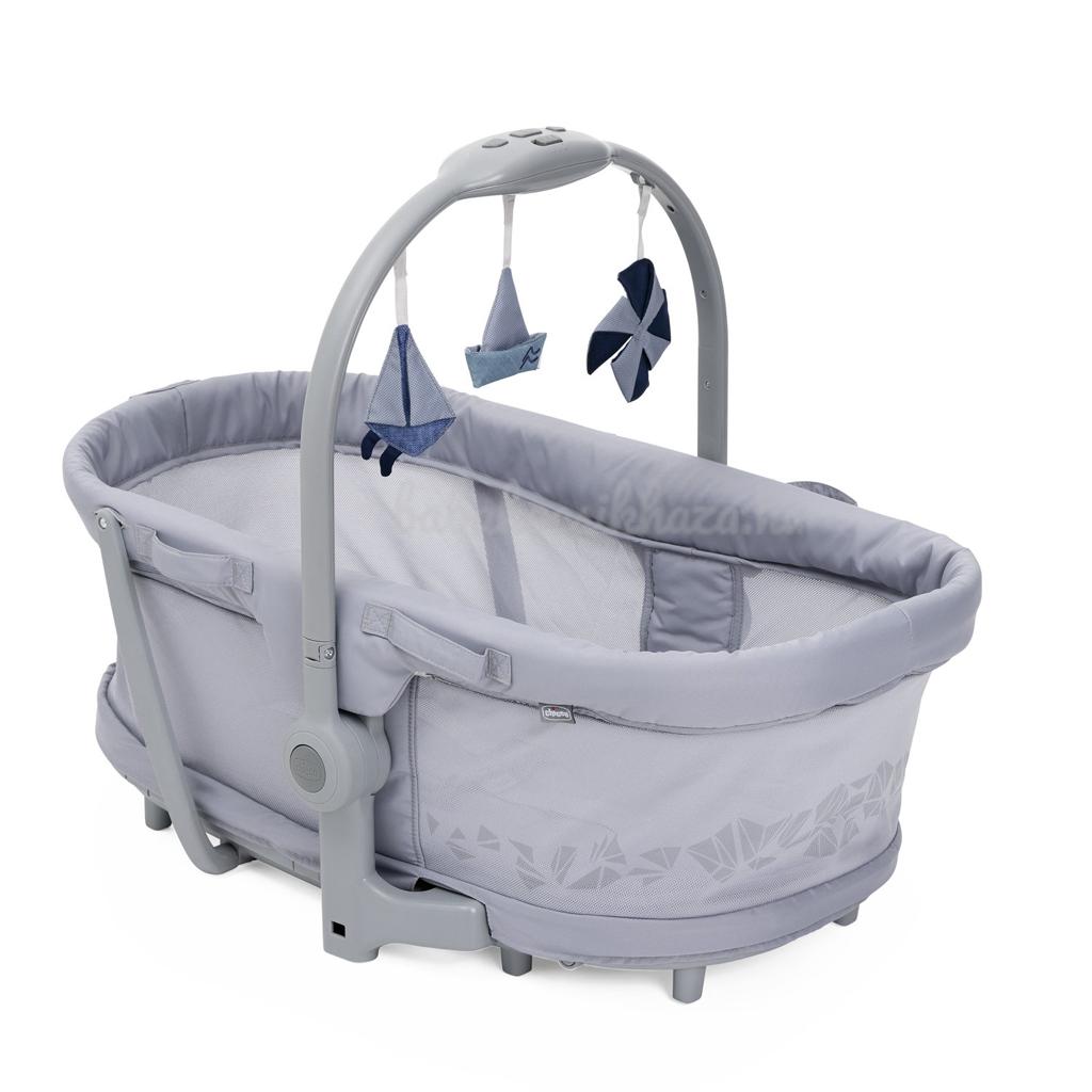 - Különálló bölcső (0–6m) – lecsatolható a szerkezetről – tökéletes megoldás a mozgatáshoz egy kétszintes házban.
