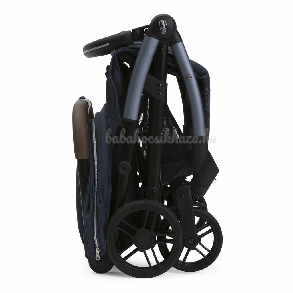 Összecsukhatóság Egyetlen érintés és a babakocsi magától összecsukódik! Összecsukva igazán kompakt és önállóan áll. A fogantyú is összecsukható a nagyobb kompaktság érdekében, vagy használható hordozóként is.