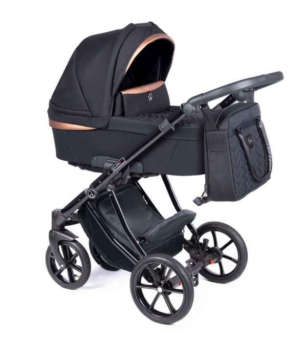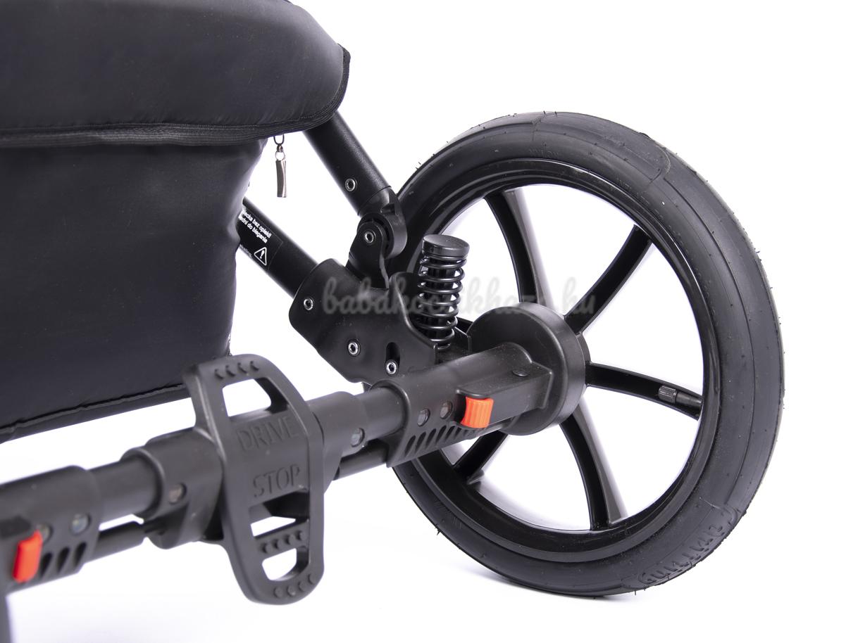 A lágy, állítható felfüggesztés lehetővé teszi a babakocsi változó terepeken történő használatát, hogy egyszerűen legyőzze az egyenlőtlen terepeket, nem csak a város járdáját, hanem a dombos erdei ösvényeket is. A babakocsi vezetésének kényelmét tovább növeli, a perforált ökobőrből készült állítható fogantyú, amely lehetővé teszi a szülő magasságához való igazítását. Fontos szempont, hogy a babakocsi egy olyan, karbantartást nem igénylő gél kerekekkel vannak felszerelve, amelynél nem áll fenn a kerék kilyukadásának veszélye.