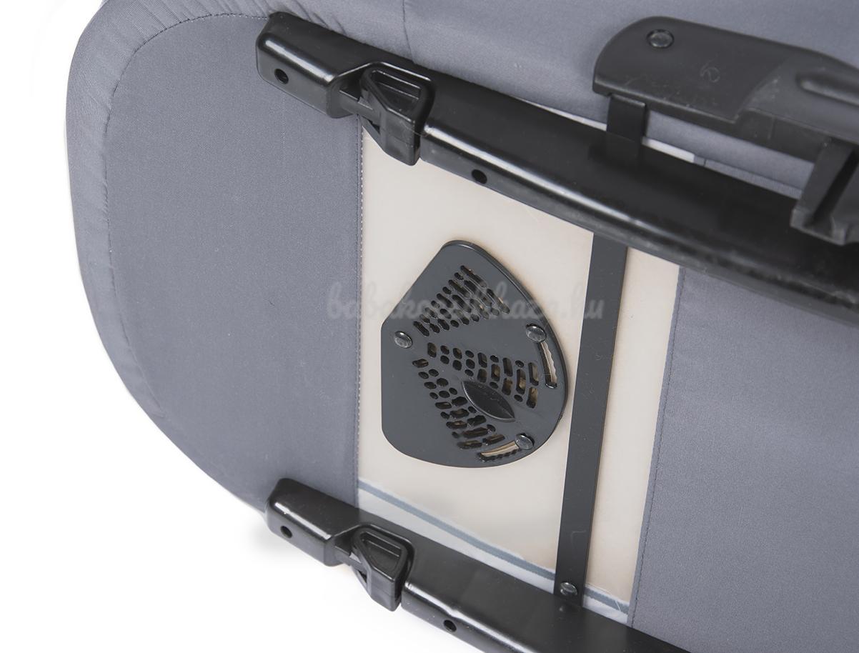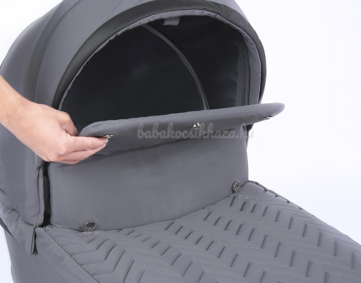A kókuszrost matrac egy bolyhos nem szőtt szövetanyagban helyezkedik el – ez a verzió megfelelő támogatást nyújt a gyermeke gerincéjének megfelelő fejlődésében, és garantálja az optimális kényelmet. A szellőzéssel ellátott mózeskosár kupolája és alja megfelelő légáramlást biztosít a melegebb napokon is.