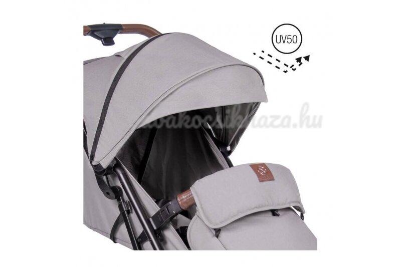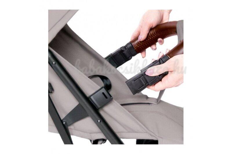 Kompakt, városi babakocsi, amely ötvözi a modern dizájnt és a kényelmet. Az innovatív automatikus összecsukható rendszer, a 360 fokban forgatható korlát és a kényelmes alvóhelyzet megkönnyíti a mindennapi sétákat. A fogantyút és a korlátot ökobőr borítja, amely tartós, időjárásálló és könnyen tisztán tartható. A kiterjesztett előtető véd a szél és az eső ellen, a hálós ablak pedig nemcsak a levegő keringését biztosítja, hanem megkönnyíti az alvó baba szemmel tartását is. A tavalyi változathoz képest a következő változtatásokat eszközöltük: nagyobb kerekek, zseb a baldachin hátsó részén, barna bőrből készült korlát és fogantyú, fém kiegészítők és rézszínű logó. Automatikusan összecsukható Miközben a kezében tartja gyermekét, a babakocsit egyetlen mozdulattal összecsukhatja, és könnyedén a csomagtartóba teheti vagy a lakásba viheti. A Maya Automatic kis súlya (7,3 kg) és a kompakt méretei együttesen megkönnyítik a mindennapos közlekedést a kicsivel. Ez különösen fontos azoknak a szülőknek, akiknek naponta többször is mozgatniuk kell a babakocsit - hogy betegyék a kocsiba vagy bevigyék egy magaspadlós lakásba. 22 kg-ig A Maya Automatic kompakt méretei ellenére 22 kg-os gyermekek számára készült. Az ülés nemcsak puha és kényelmes, hanem kellően széles is. 360 fokos korlát - megkönnyíti a babakocsiba való önálló be- és kiszállást, anélkül, hogy teljesen ki kellene kapcsolni a babakocsit. Szellőzőpanel A Maya Automatic szellőzőpanellel van ellátva a tető hátsó részén, valamint egy további hálós ablakkal, amely nemcsak a levegő keringését javítja, hanem lehetővé teszi, hogy szemmel tartsa a kisgyermekét. A nagyvonalú, UV 50+ szűrővel ellátott baldachin kihúzható. A hidegebb napokra egy lábtakaró is jár hozzá. Alvási pozíció A fokozatmentesen állítható háttámla nem ébreszti fel gyermekét az alvásból, ha fekvőhelyzetbe kibontja. Bővíthető baldachin A nagyvonalú, kihúzható, UV50+ szűrővel ellátott baldachin tökéletesen védi gyermekét a szél, a nap és az eső ellen. 360 fokos korlát Könnyen tisztítható ökobőrből készült, levehető huzattal rendelkezik. A visszahajtható funkciónak köszönhetően gyorsan kihúzhatja gyermekét anélkül, hogy teljesen eltávolítaná a korlátot. Ablak a megfigyeléshez A baldachin hálós ablaka megkönnyíti a szellőzést, és lehetővé teszi, hogy szemmel tartsa a kicsinyét, ha elalszik a séta közben. Párnázás Lágy rugózás az egyenetlen terepfelület tompítására. EVA kerekek forgatható rögzítéssel Az EVA kerekek a könnyű sportcipőkben használt anyagból készülnek. Kis súlyuk és ütéscsillapító képességük jellemzi őket. 5 pontos pántok Megvédik a kisgyermeket a babakocsiból való kieséstől. Két független lábtartó Kisebb és nagyobb gyermekek számára. Modern összecsukható rendszer Az egyedülálló összecsukható rendszer lehetővé teszi, hogy a babakocsi egy kézzel összecsukható legyen. Így gyorsan és hatékonyan elfér a csomagtartóban. Védőtető UV-szűrővel 50+ A nagyvonalú, UV 50+ védelemmel ellátott, nagyméretű előtető kihúzható. Megnövelt kerekek A babakocsi legújabb verziójánál a hátsó kerekek megnagyobbodtak. Szellőzőpanel Nem csak a légáramlást javítja, de lehetővé teszi, hogy szemmel tartsa a kisgyermeket is
