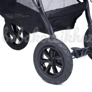 A babakocsi hátul 25 cm átmérőjű, elöl 21 cm átmérőjű pneumatikus kerekekkel rendelkezik. Méretüknek köszönhetően a babakocsit járdán és nagyobb kihívást jelentő felületeken is képesek szállítani. Mind a négy kerék lengéscsillapítóval van ellátva, amely az ütődések és egyenetlenségek elnyelésével kényelmes utazást biztosít a kicsinek.