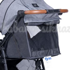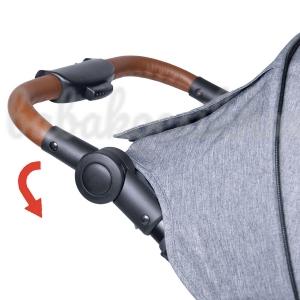 A hátsó panel felhajtható, így a forró napokon kellemes szellőt adhat a kicsinek.