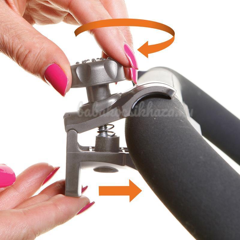 kéznél tartsa. Könnyen rögzíthető a babakocsi fogantyújának felső vagy oldalsó részére,