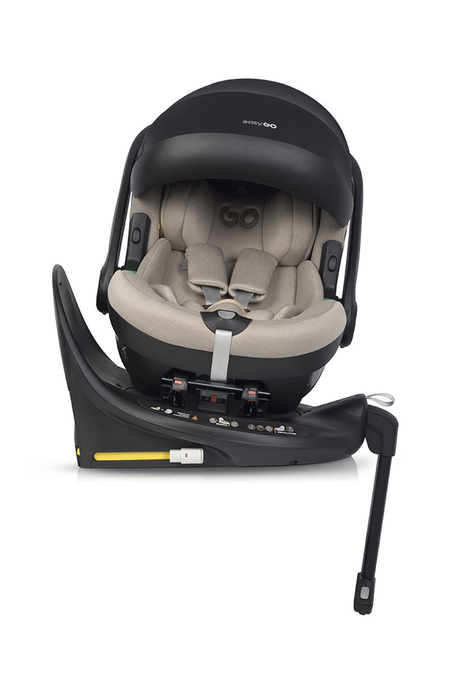 FORGATHATÓ ISOFIX ALAP - a forgatható ISOFIX alapnak köszönhetően gyorsan és kényelmesen ültetheti gyermekét az ülésbe. Az alap lehetővé teszi, hogy az ülést oldalirányban pozícionálja a gyermek beültetésének idejére és a megállás idejére (például a gyermek etetésekor, miközben a szülő a gyermek mellett ül). Nagy előnye, hogy az ülés oldalirányú helyzetben is bepattintható az alapba.