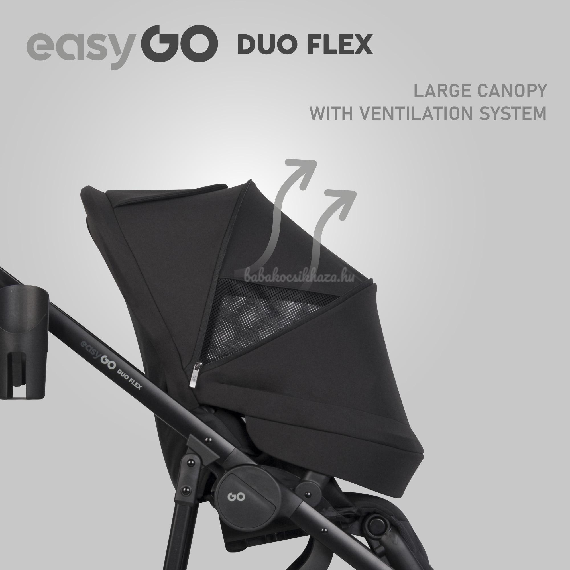 A Duoflex babakocsi 2 az 1-ben készletben kapható mózeskosárral és sportüléssel, 3 az 1-ben kiegészíthető EASYGO BUZ autósüléssel vagy akár 4 az 1-ben autósüléssel és EASYGO BUZ PRO isofix talppal.