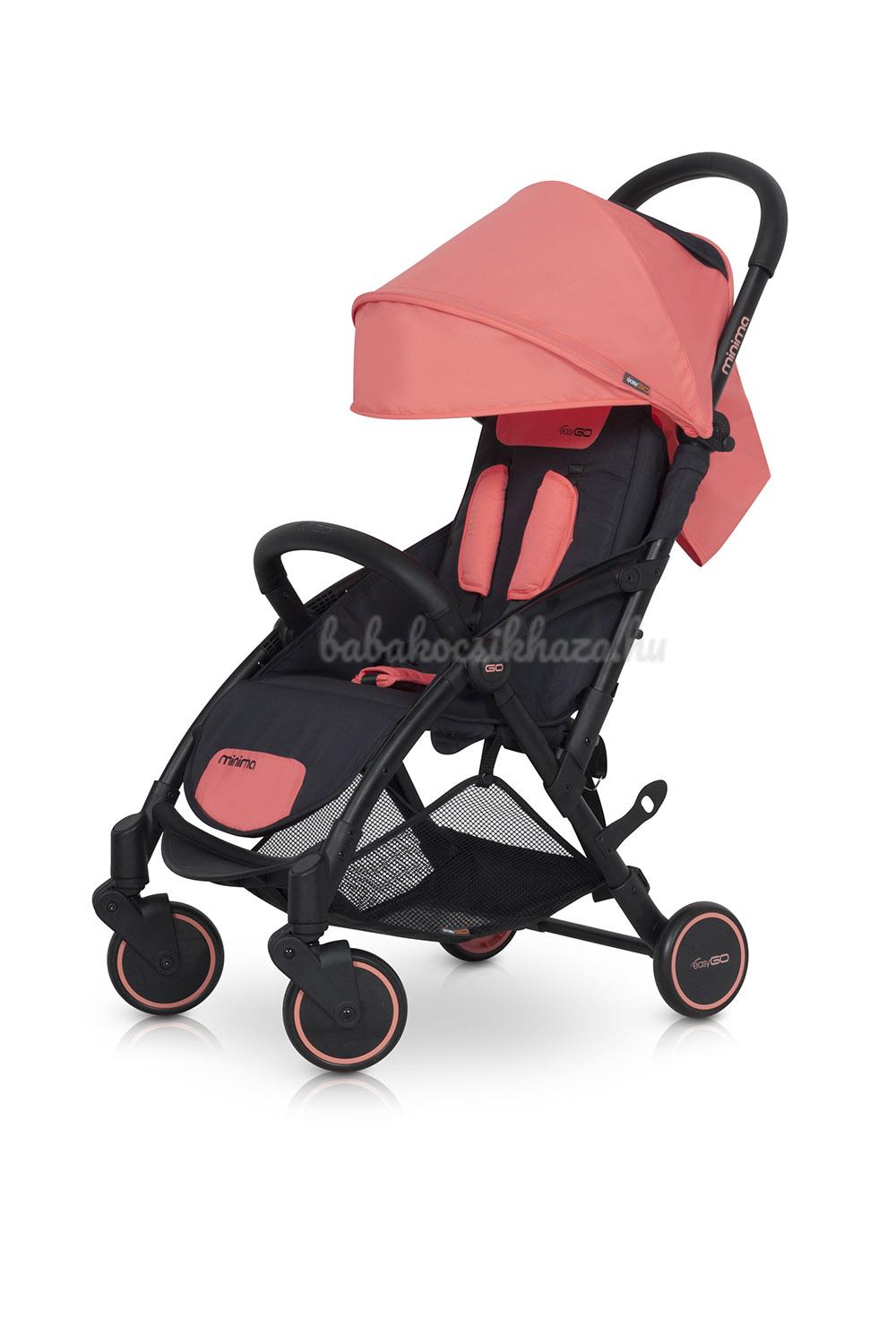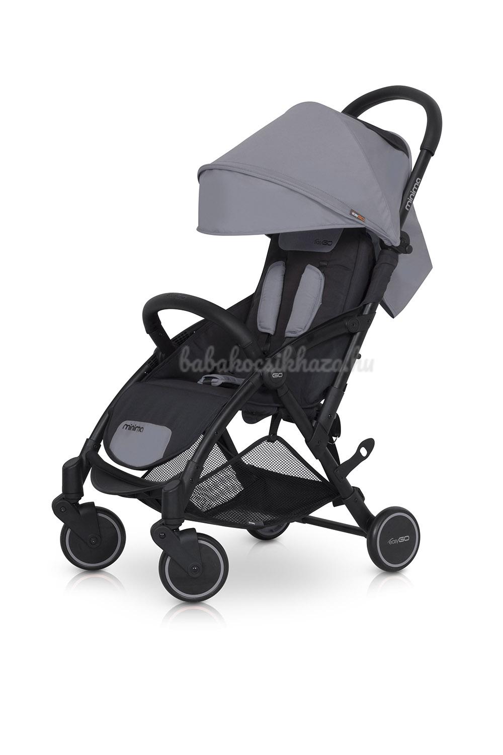 Easy Go Minima aluminium vázas sportbabakocsi. A kocsival együtt összezáródó biztonsági fogantyú, a dönthető háttámla és az állítható lábtámasz csak néhány a rengeteg előny közül, amely a gyermeked biztonságát és kényelmét hivatott szolgálni. Az egyszerű összecsukás, a kis méretek és a nagyon könnyű súly megkönnyíti a mindennapi használatot a számodra. Napos időben a búra dönthető napellenzője védi gyermeked az erős napsugárzástól. A trendi színek széles választékának és a színben hozzáillő kosárnak köszönhetően, a termék nagyon divatos, de ugyanakkor praktikus és strapabíró is