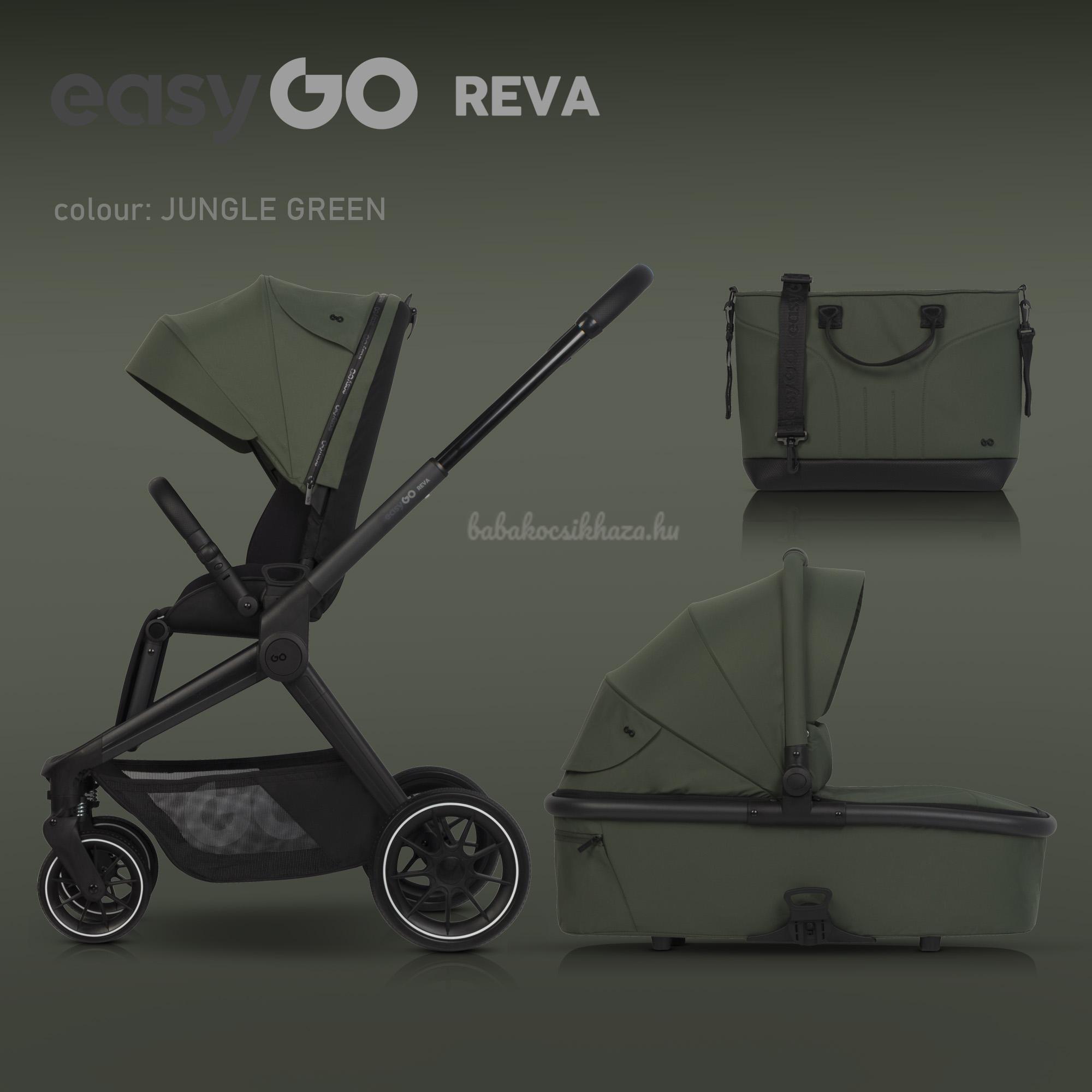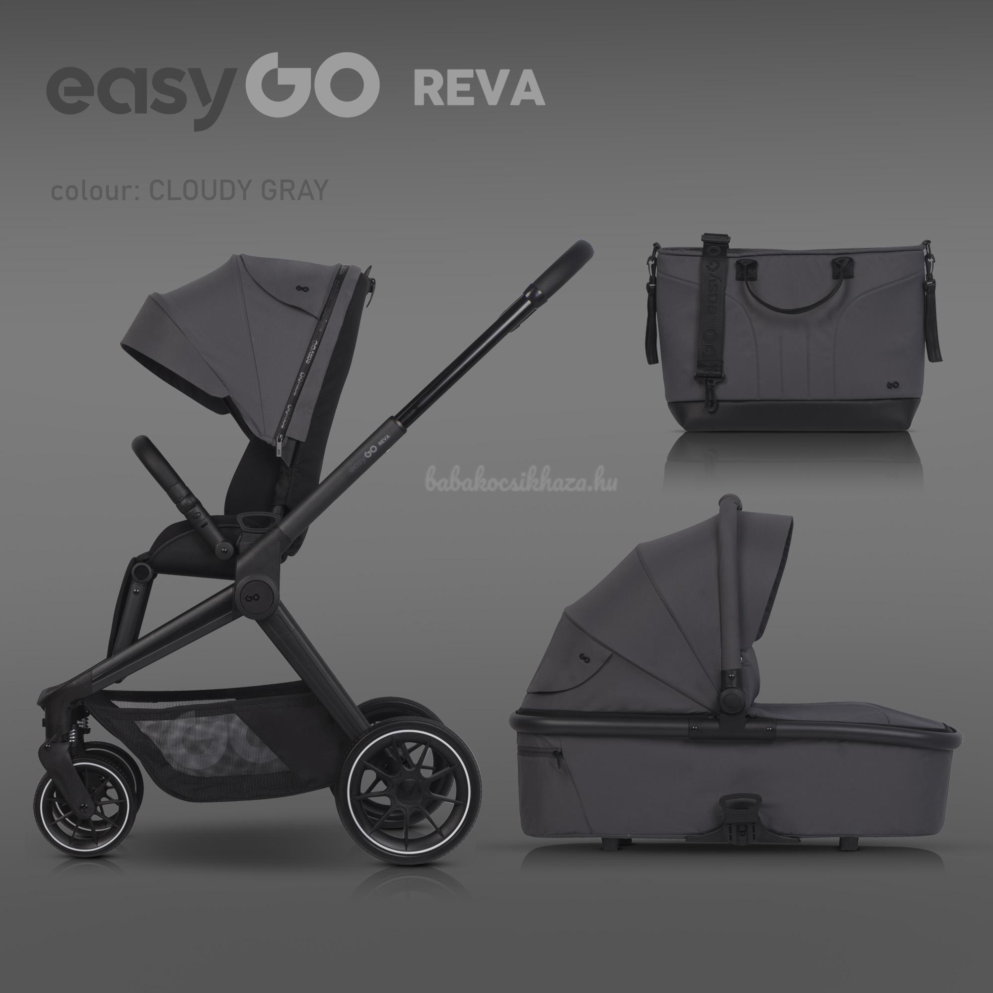 A Reva babakocsi 2 az 1-ben készletben kapható mózeskosárral és sportüléssel, 3 az 1-ben kiegészíthető EASYGO BUZ autósüléssel vagy akár 4 az 1-ben autósüléssel és EASYGO BUZ PRO isofix talppal.
