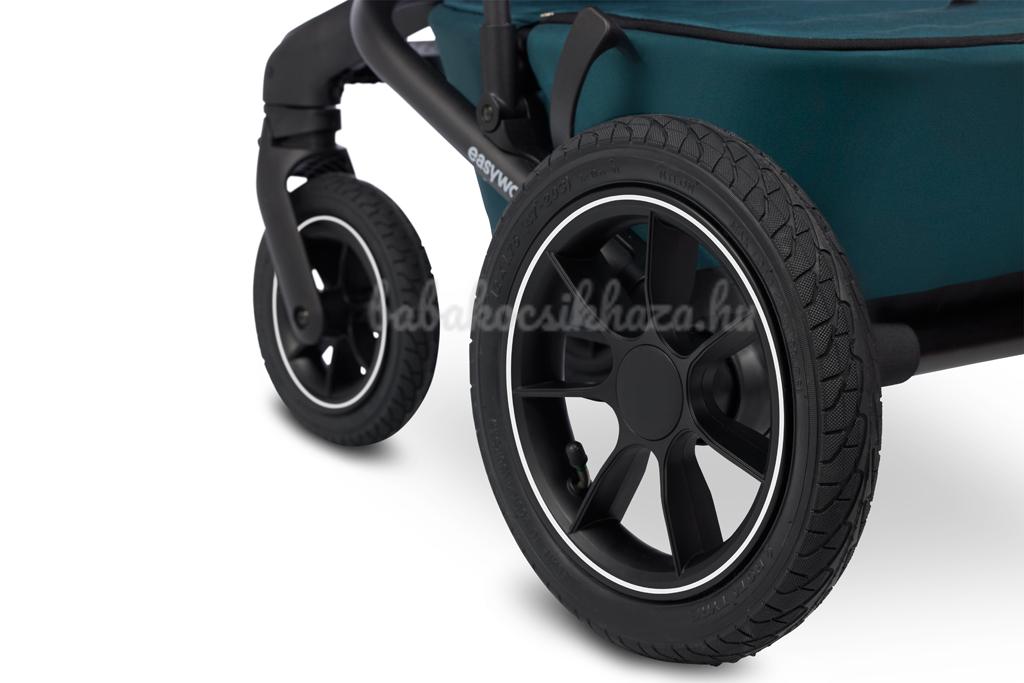 Ez egy kényelmes utazás Önnek és gyermekének. Bármikor alkalmas a kalandozásra, hiszen a nagy, könnyen irányítható kerekeknek köszönhetően a városi utcákon vagy a terepen is könnyedén siklik.