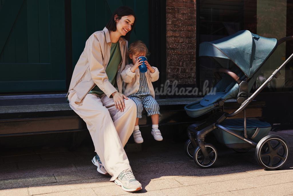 Ez egy kényelmes utazás Önnek és gyermekének. Bármikor alkalmas a kalandozásra, hiszen a nagy, könnyen irányítható kerekeknek köszönhetően a városi utcákon vagy a terepen is könnyedén siklik.