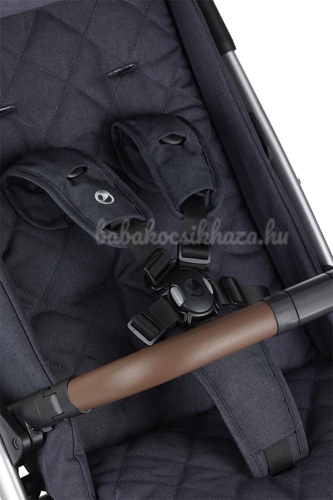 a babakocsi stílusát az öko-bőr fogantyú és karfa hangsúlyozza