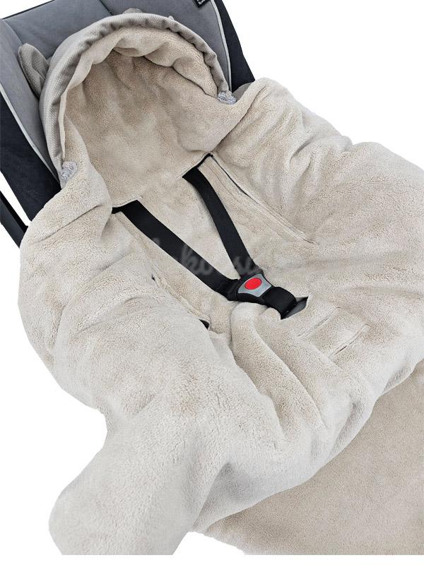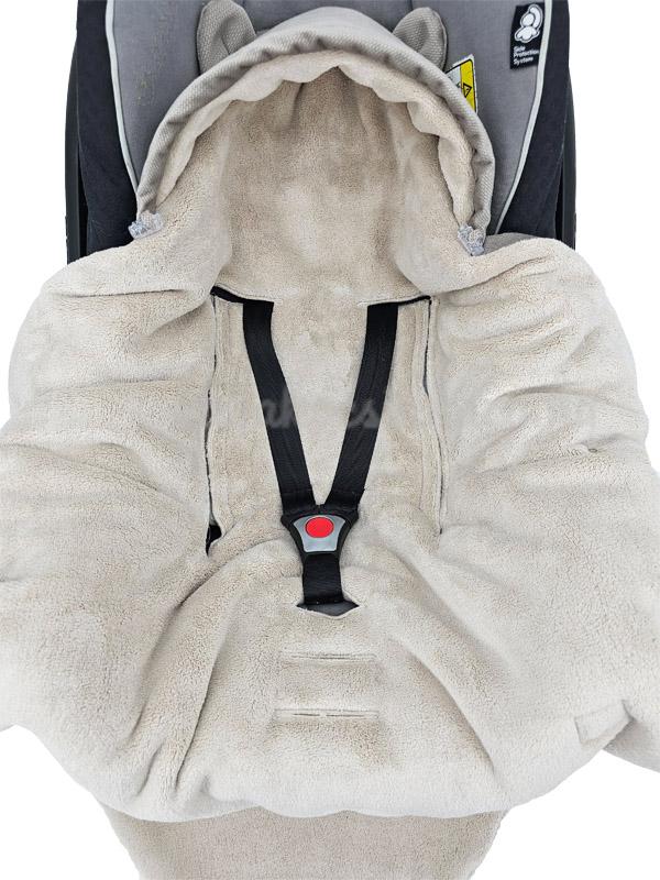 Ez a termék autósülésben vagy önállóan használható. A speciális nyílás- és rögzítőrendszer lehetővé teszi, hogy az autósülésbe rögzítse anélkül, hogy ki kellene csatolni a hevedereket, és a gyermek rögzítése után csak be kell takarni. Az előnye, hogy nem esik le, mint egy takaró, hanem körülöleli az egész gyermeket. A bundazsák 3 vagy 5 pontos biztonsági övekhez alkalmas. Az autósüléshez való bundazsák övnyílás-rendszerrel van felszerelve, amely kompatibilis a legtöbb autósüléssel, tépőzárral záródik. Alkalmas 3–18 hónapos gyermekek számára.