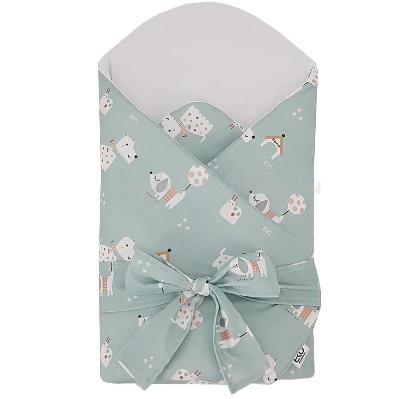 EKO Bebújós takaró pamutból kókusz kivehető betéttel és masnival Dogs Mint 75x75 cm