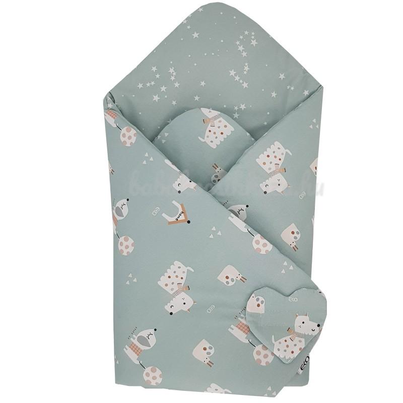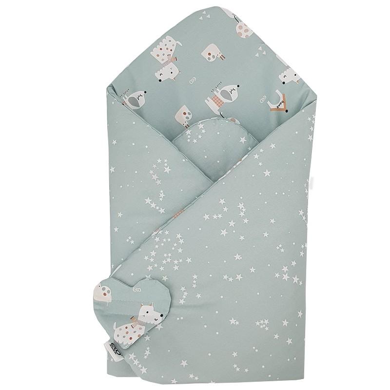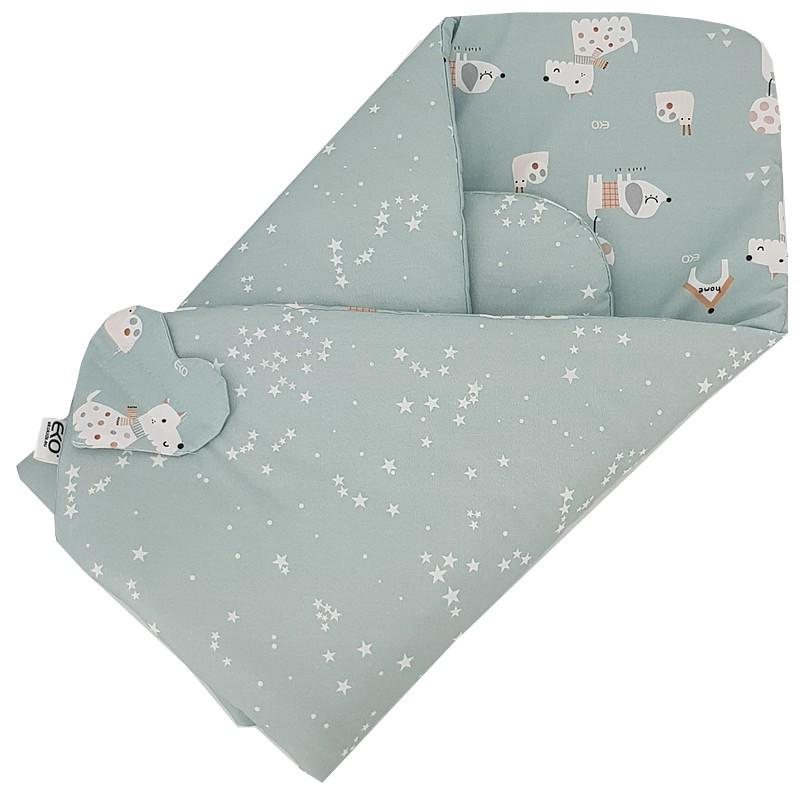 EKO Kifordítható pamut pólya Dogs Stars Mint 75x75 cm