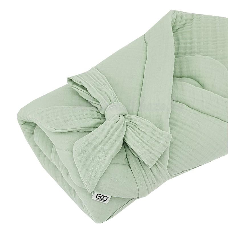 EKO Muszlin pólya kókusz kivehető betéttel és masnival Mentol 75x75 cm