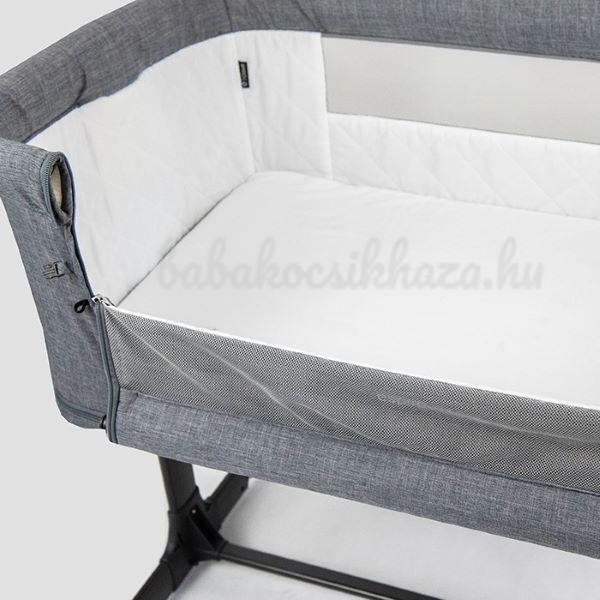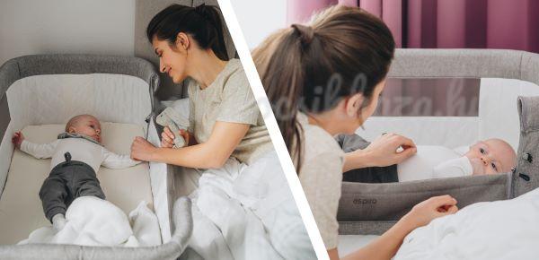 - Ágykerethez külön rögzítő pánttal fixálható, ha a szülői ágy kialakítása megengedi, így alvás közben nem tudod eltolni a bölcsőt.