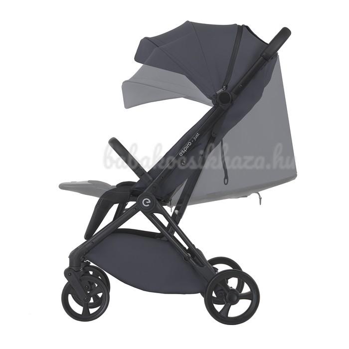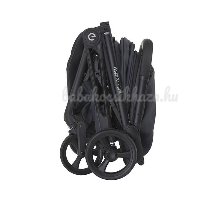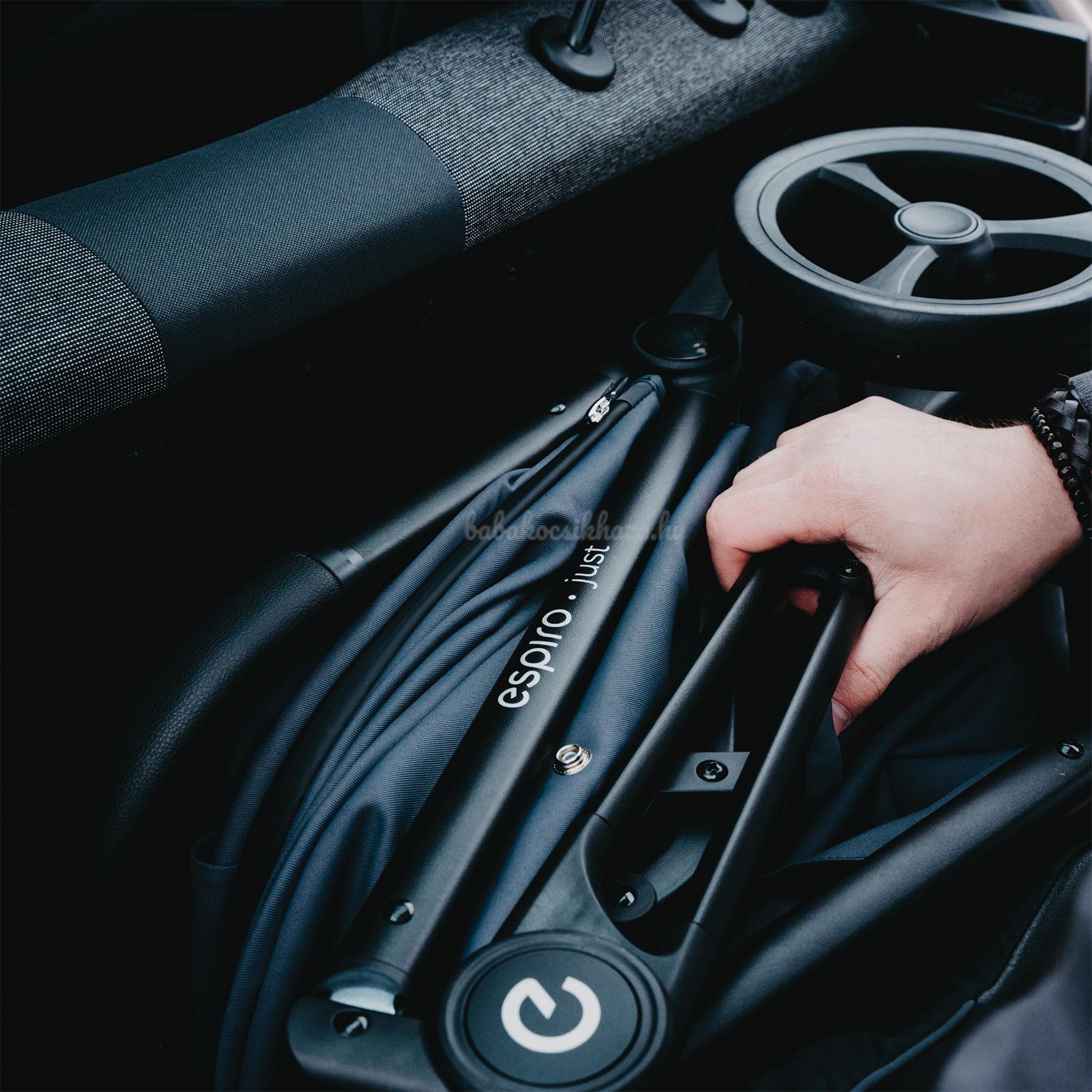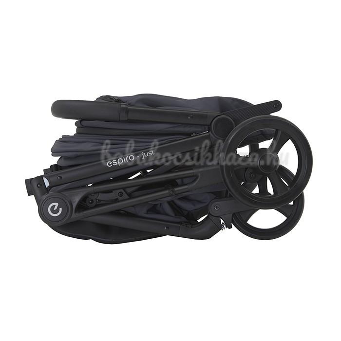 Az Espiro Just egy 0+ korosztályra tervezett babakocsi. Ezért újszülötteknek és 22 kg-ig terjedő súlyú gyermekeknek egyaránt megfelelő. Az Espiro Just babakocsi a funkcionalitás és a design kombinációja. Jellemzője a nagy kerekek, amelyeknek köszönhetően nem kell aggódnia azon a felületen, amin a babakocsit tolni szeretné. Az Espiro Just babakocsiban van egy automatikus összecsukó rendszer - autofolding, amely lehetővé teszi, hogy egyetlen mozdulattal összecsukja a babakocsit. Könnyű, ami megkönnyíti a szállítást és az emelést. Kompakt formája lehetővé teszi, hogy szinte bárhol tárolja. Annak ellenére, hogy könnyű és kis méretű, mindent beletettünk, amire szüksége lehet: egy teljes értékű kényelmes ülést, ötpontos biztonsági öveket, nagy kerekeket és egy praktikus bevásárlókosarat.
