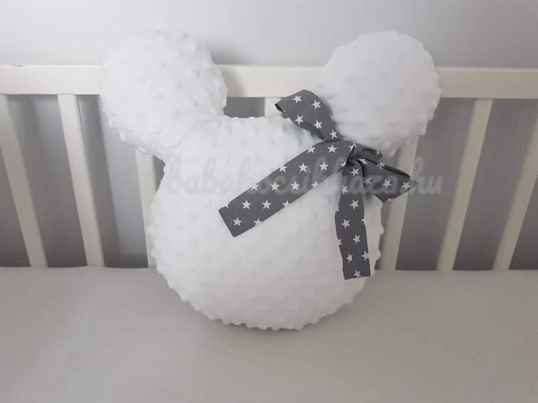 Handmade Mickey díszpárna minky wellsoft fehér szürke masnival