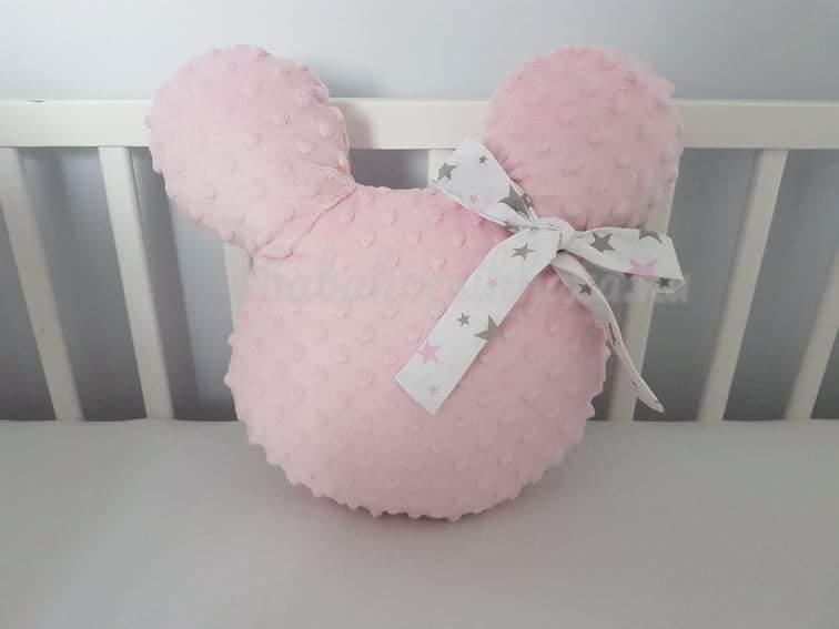 Handmade Mickey díszpárna minky wellsoft rózsaszín fehér masnival