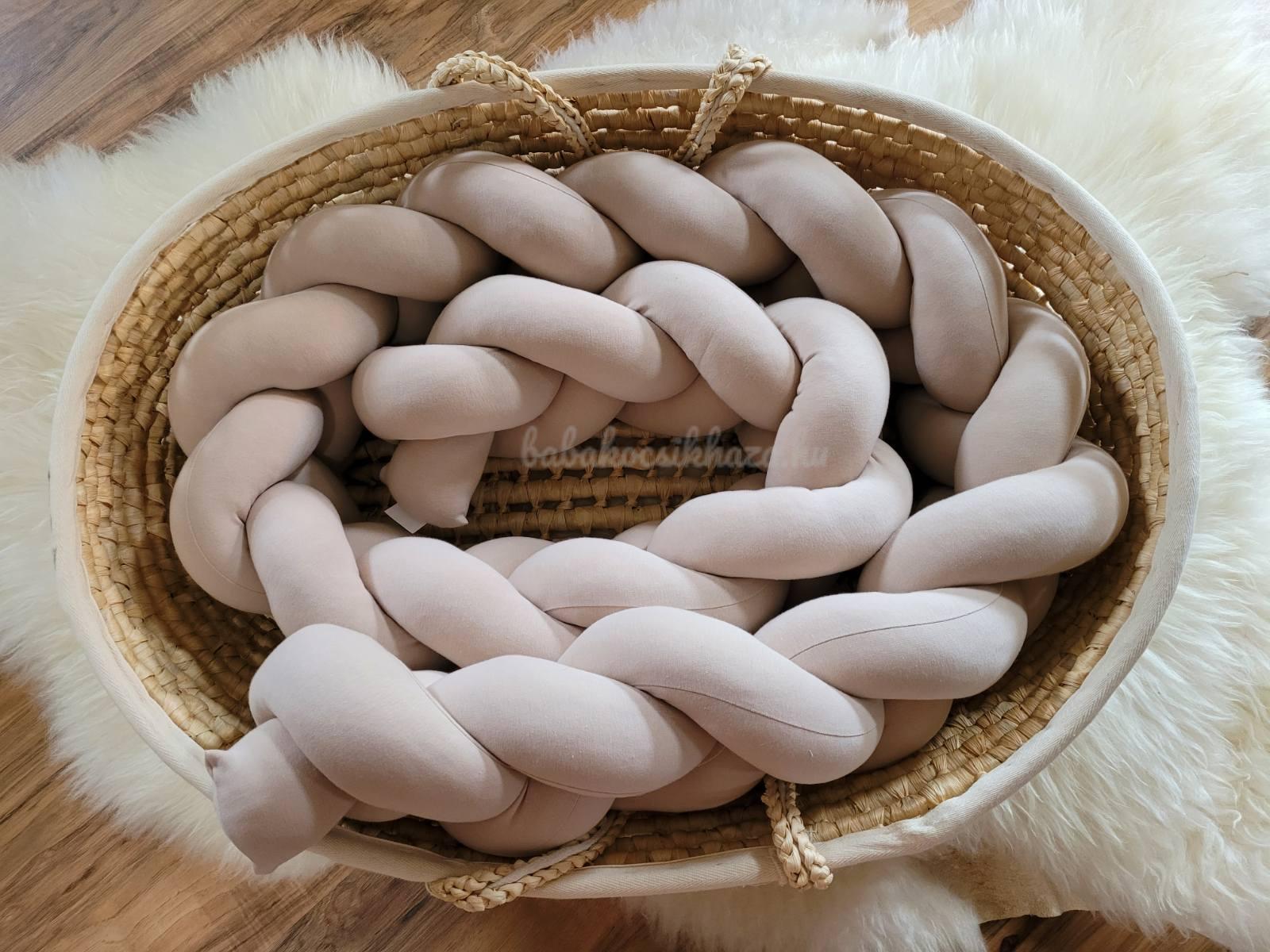 Kellemes színű puha rácsvédő fonat a babák biztonságos pihenéséhez.