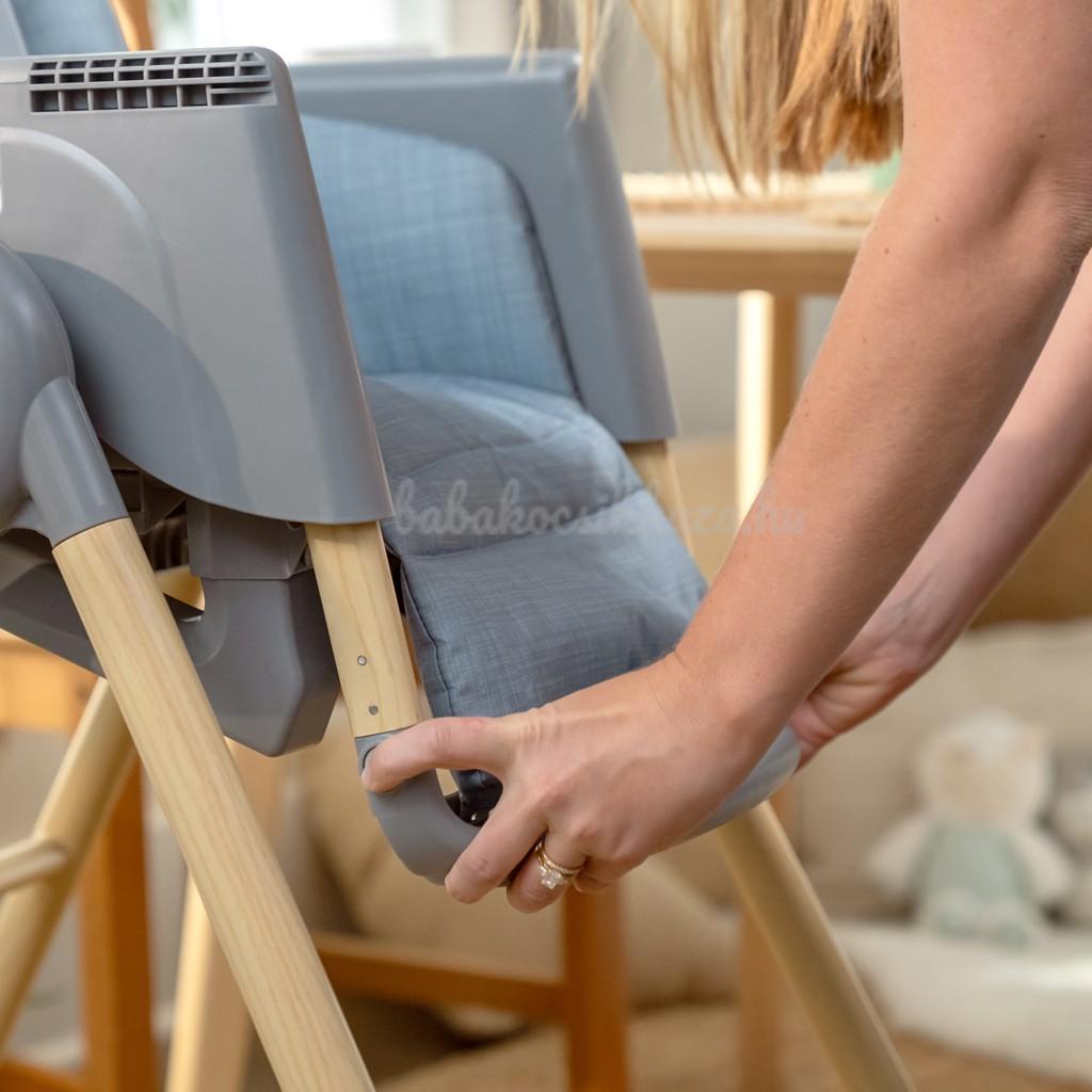 A szék ergonomikus kialakítása segít a testtartás stabilitásában, miközben a több pozícióban állítható lábtartó megakadályozza a lábak lógását és nagyobb kényelmet nyújt, hogy a gyermek az étkezésre koncentrálhasson. A 90/90/90 ülési kialakítás optimális helyzetben tartja a gyermek lábát 90 fokos szögben, elősegítve a kényelmet és a helyes testtartást. A szék ülőbetétje és betéte mosógépben mosható.