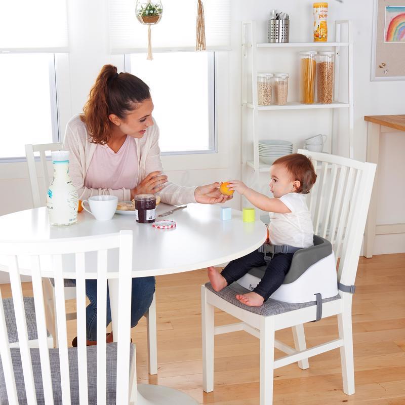 HU Description Kényelmes, könnyen tisztítható ülésmagasító, mely segít, hogy gyermeke az étkezések során megfelelő magasságban üljön az asztalnál.