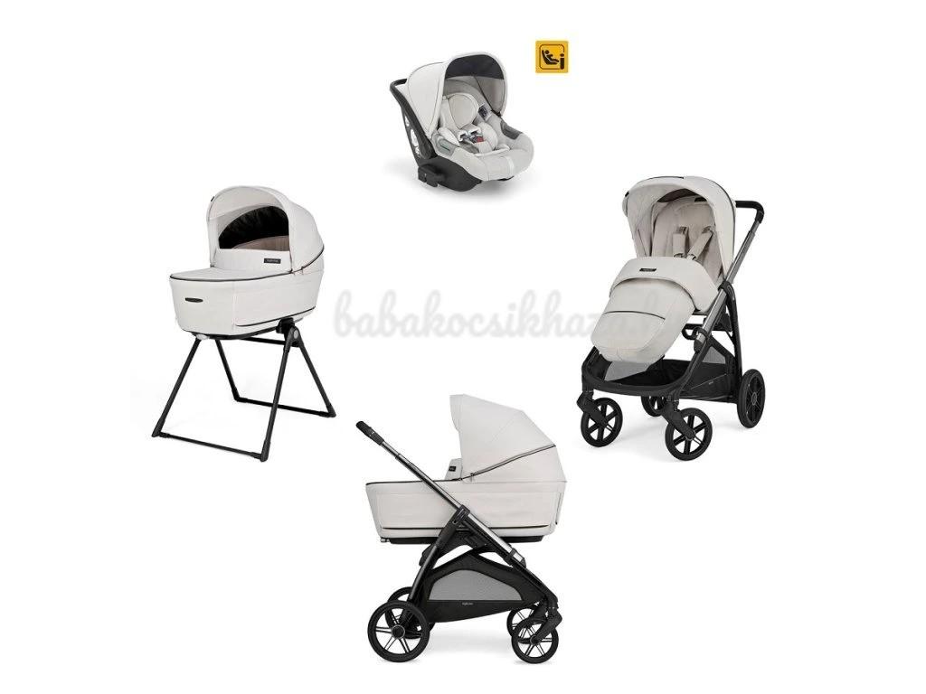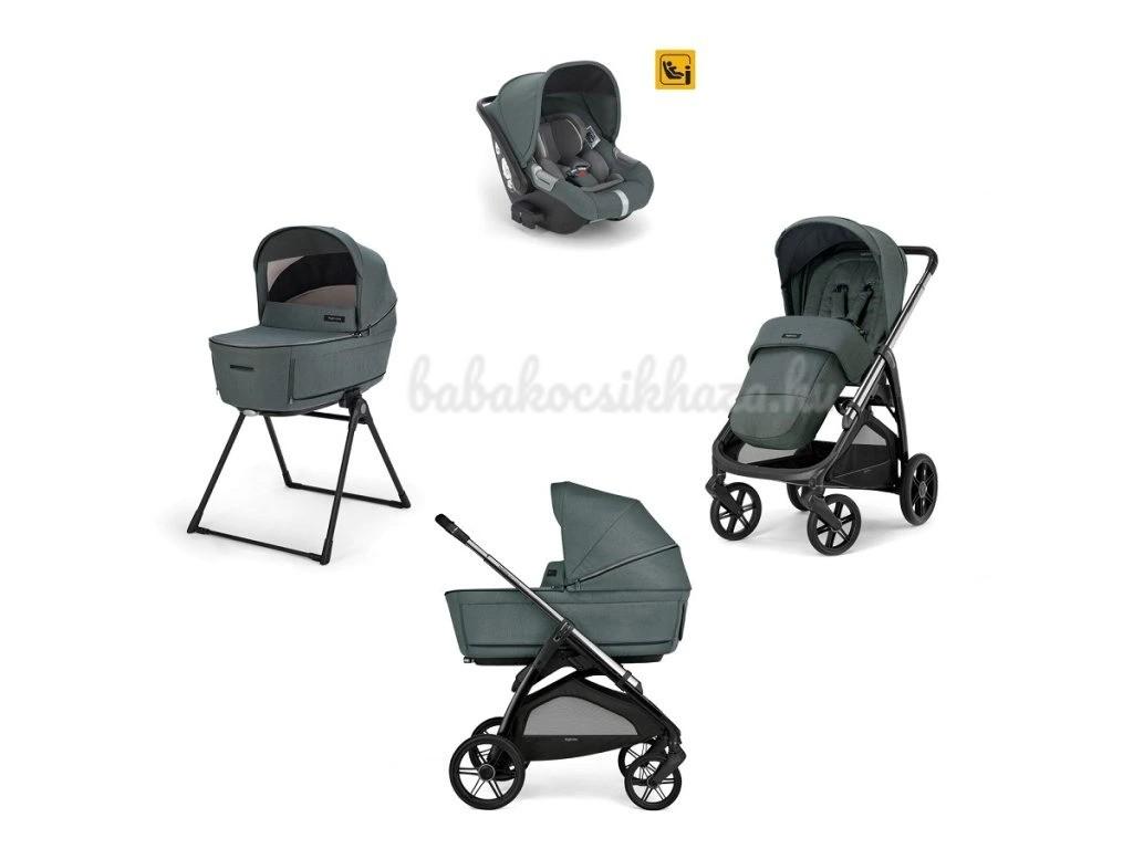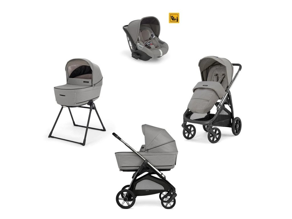 Az Aptica 4in1 Darwin szett tartalmazza: mózeskosár, matrac, Welcome PadTM, Stand UpTM állvány, Darwin i-Size autósülés, All Season sportülés kupolatetővel és betéttel, lábzsák, bevásárlókosár, pohártartó, az új Aptica babakocsi váz.