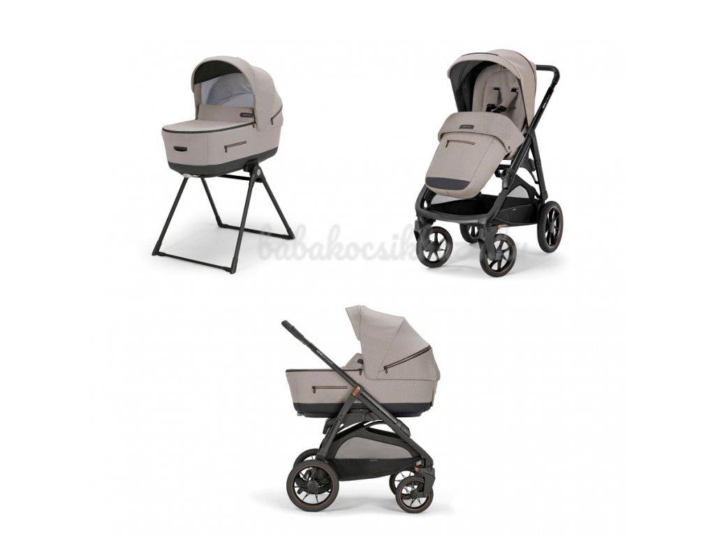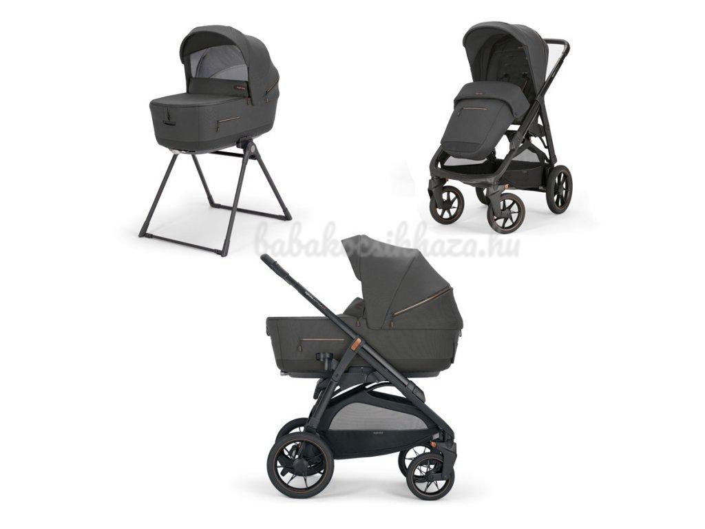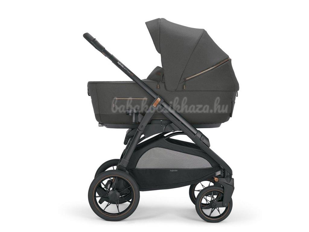 Kombinált babakocsi Aptica XT tartalmaz:mély mózeskosár,matrac,Welcome PadTM, állvány Stand UpTM, sport babakocsi kupolatetövel,lábzsák,rakodó kosár,pohártartó,alváz Aptica XT.