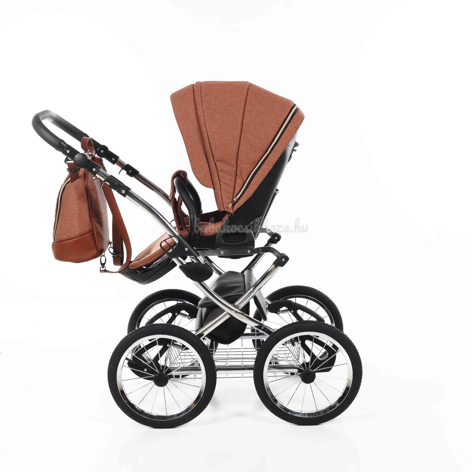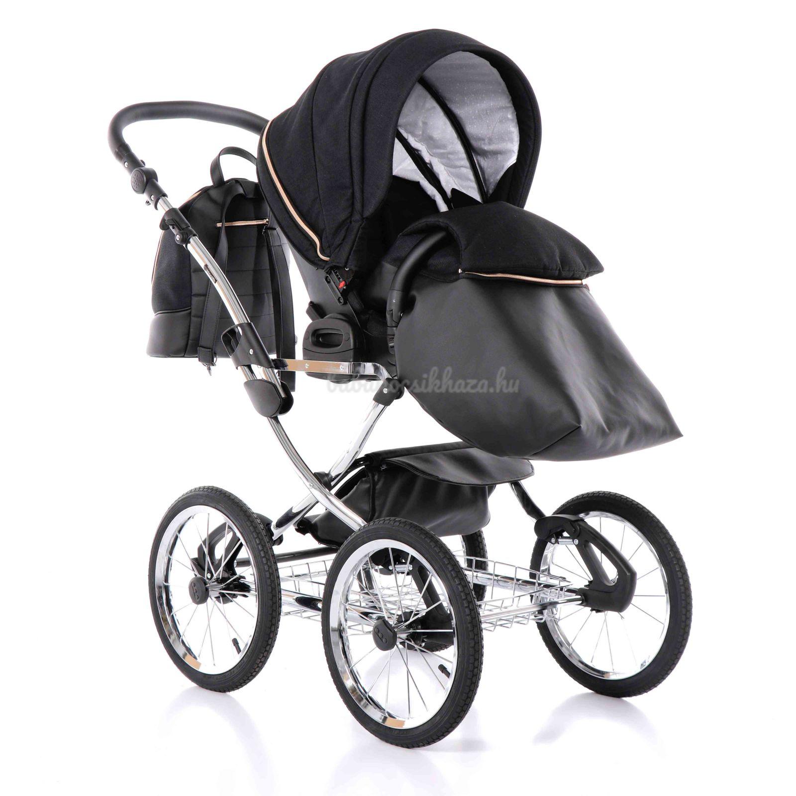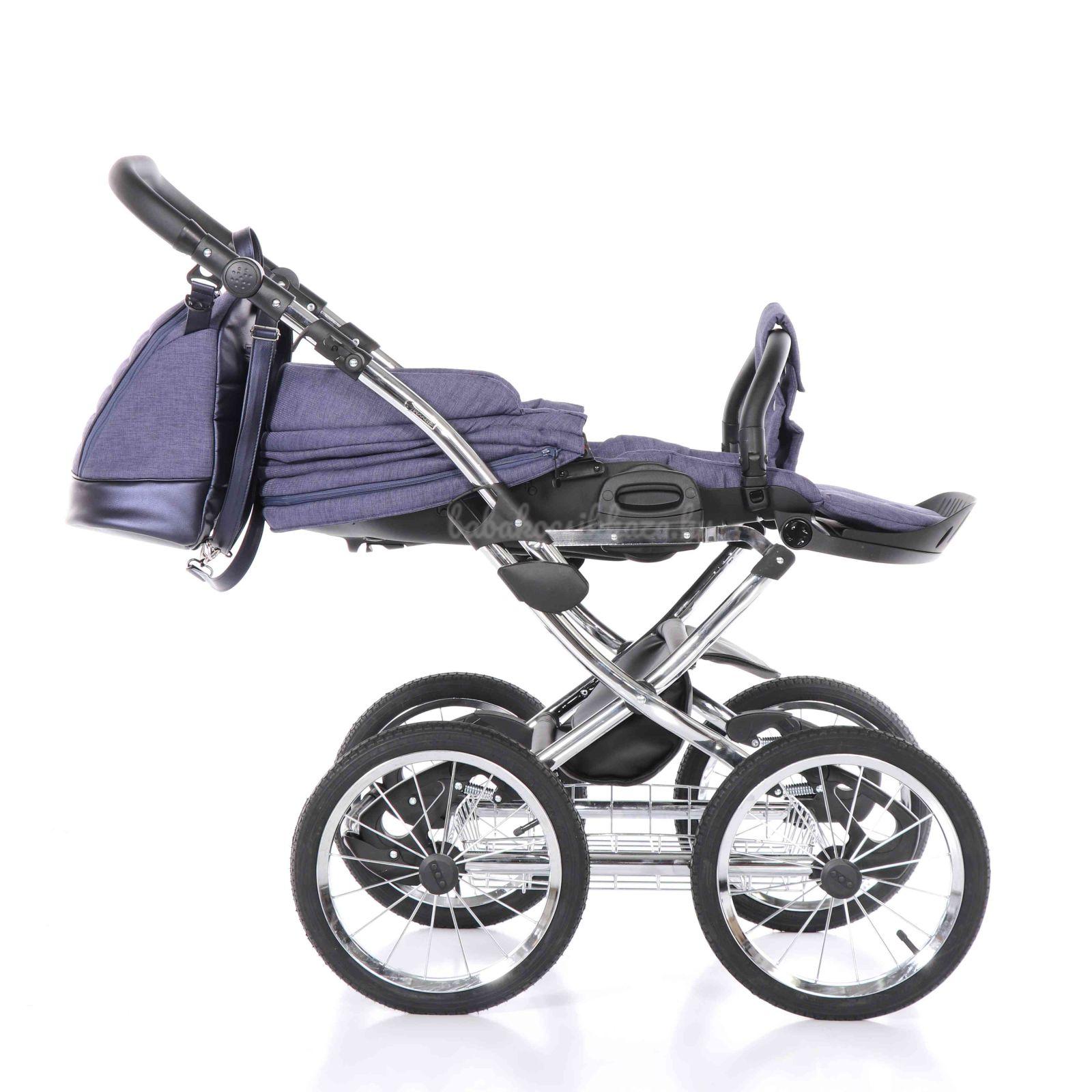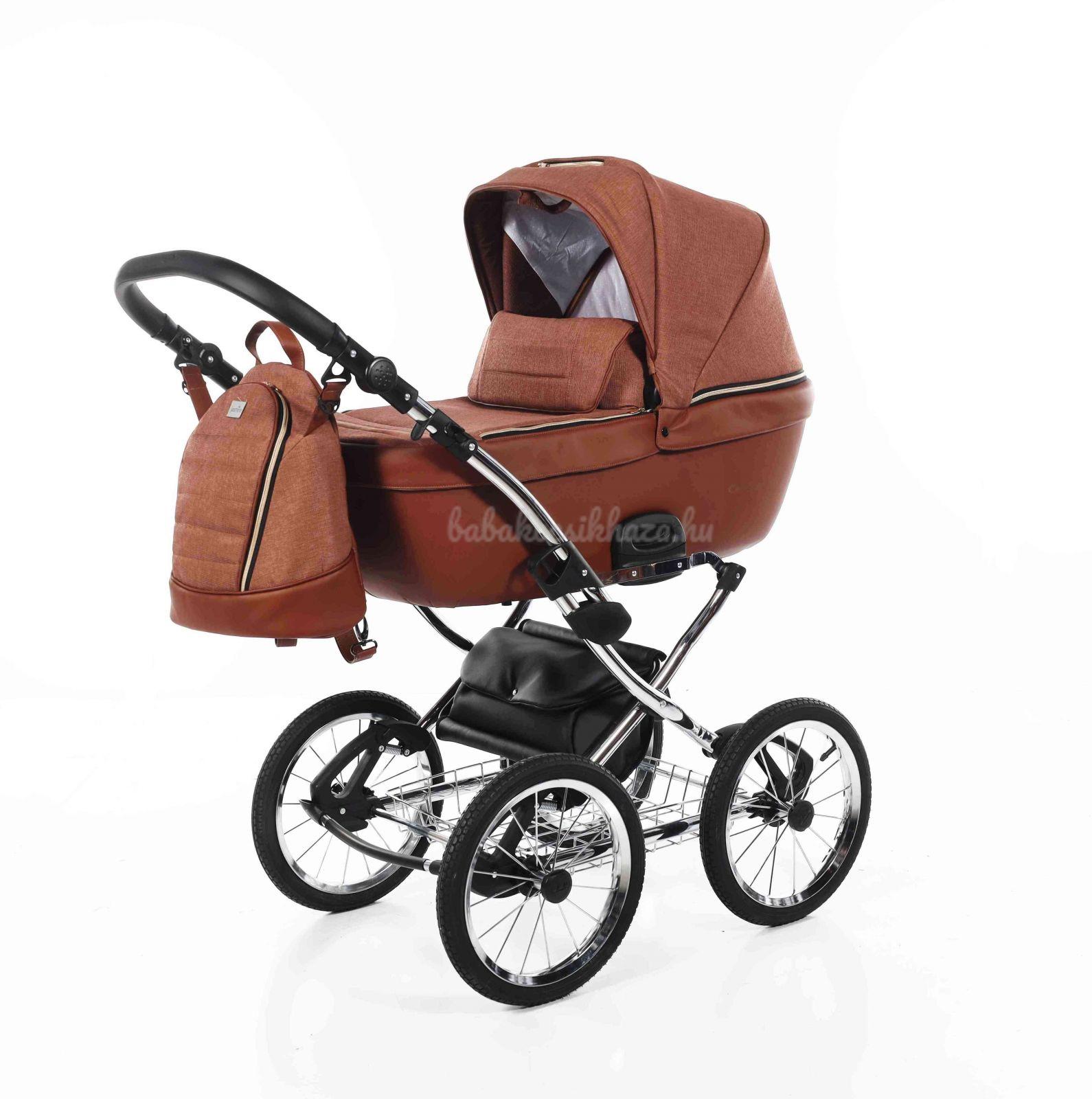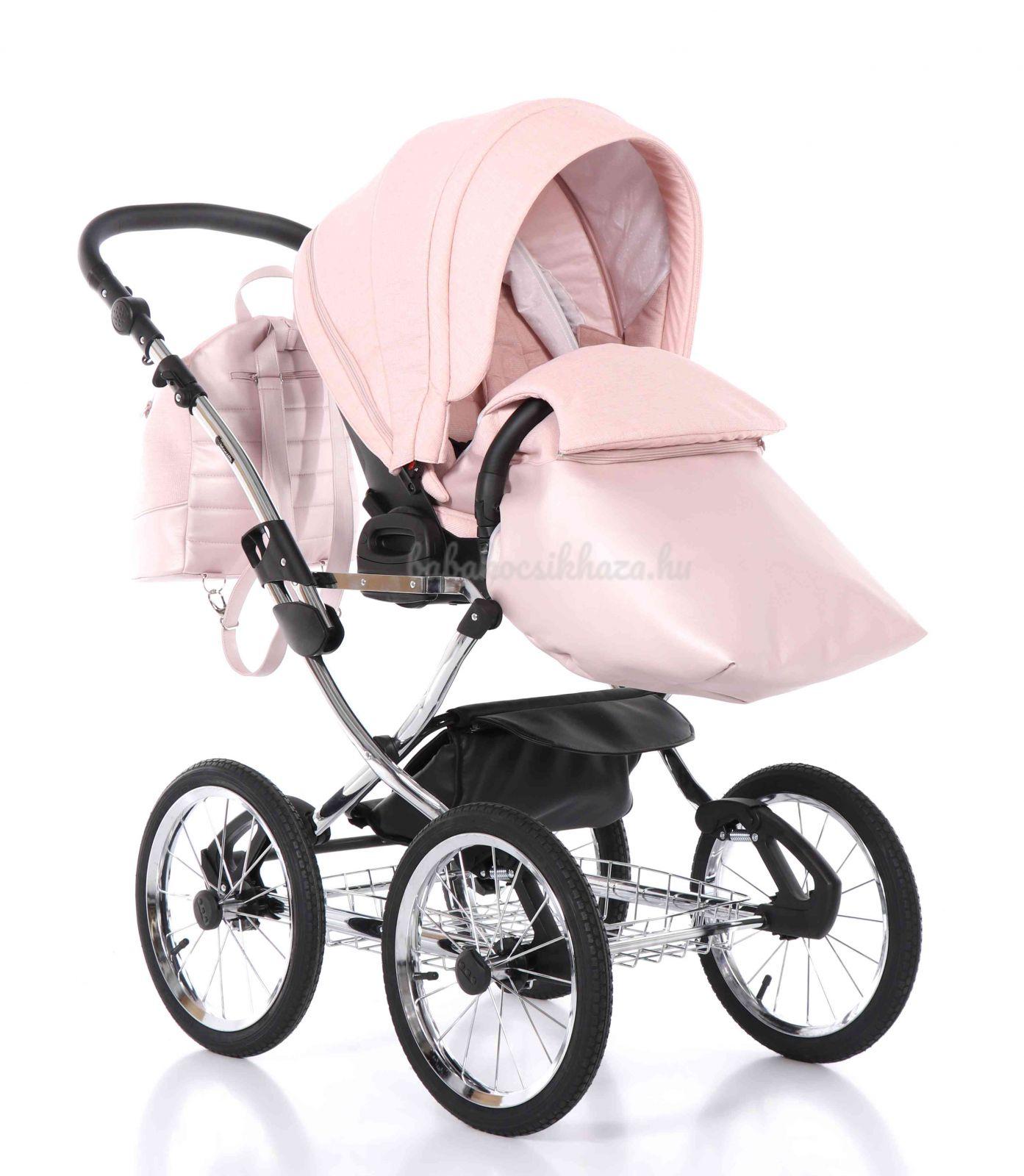 A babakocsi a tágas műanyag mózeskosárnak köszönhetően nagyon kényelmes a gyermekek számára.