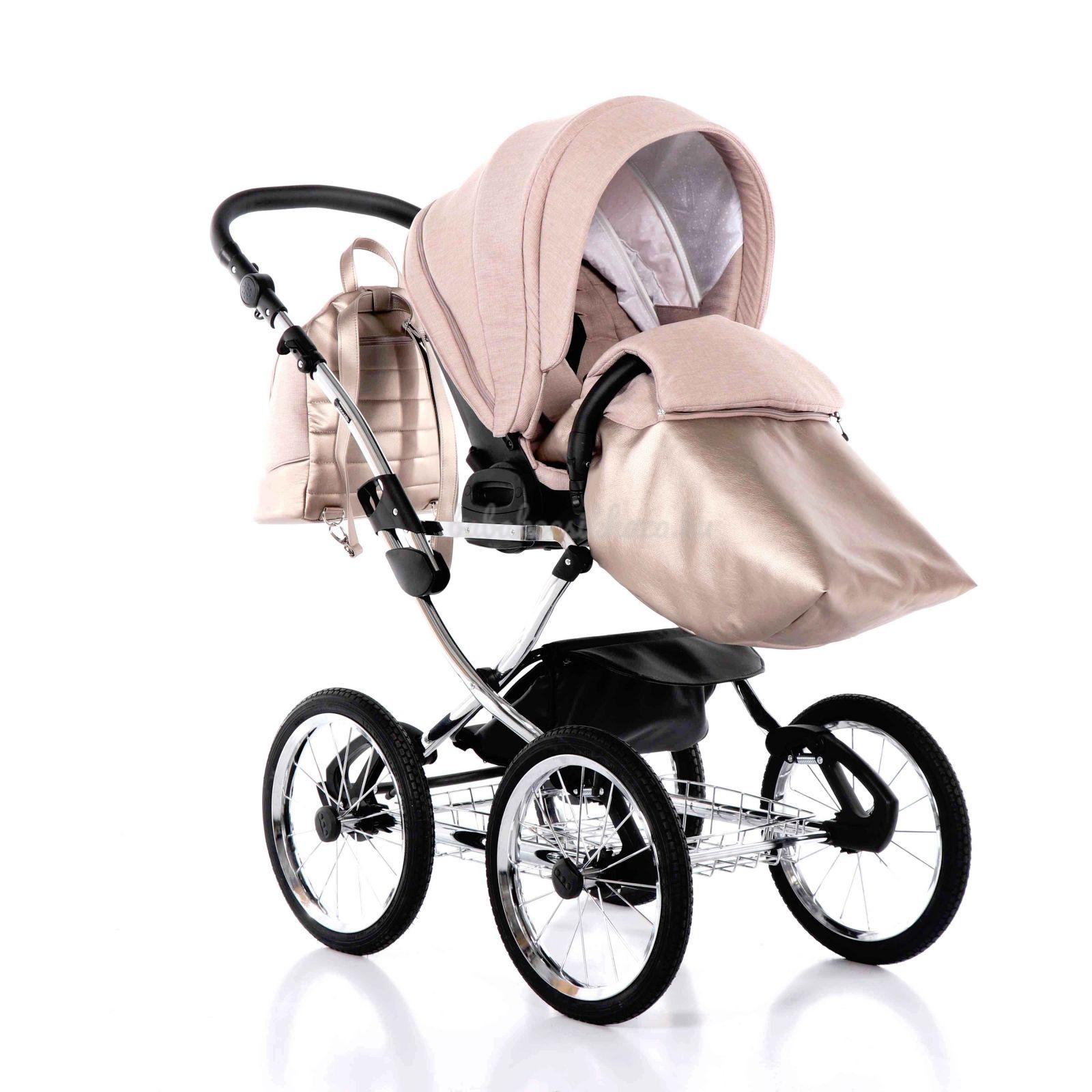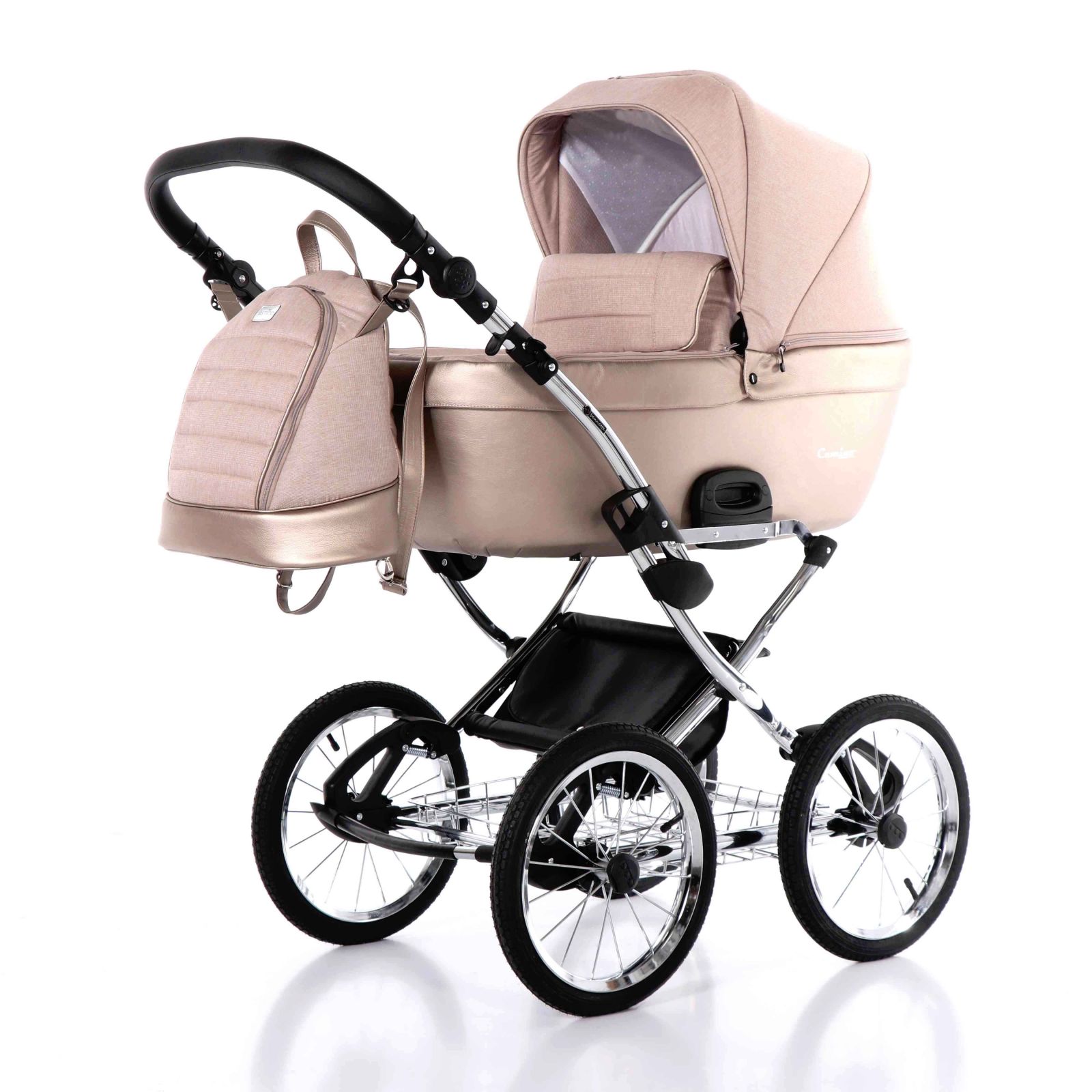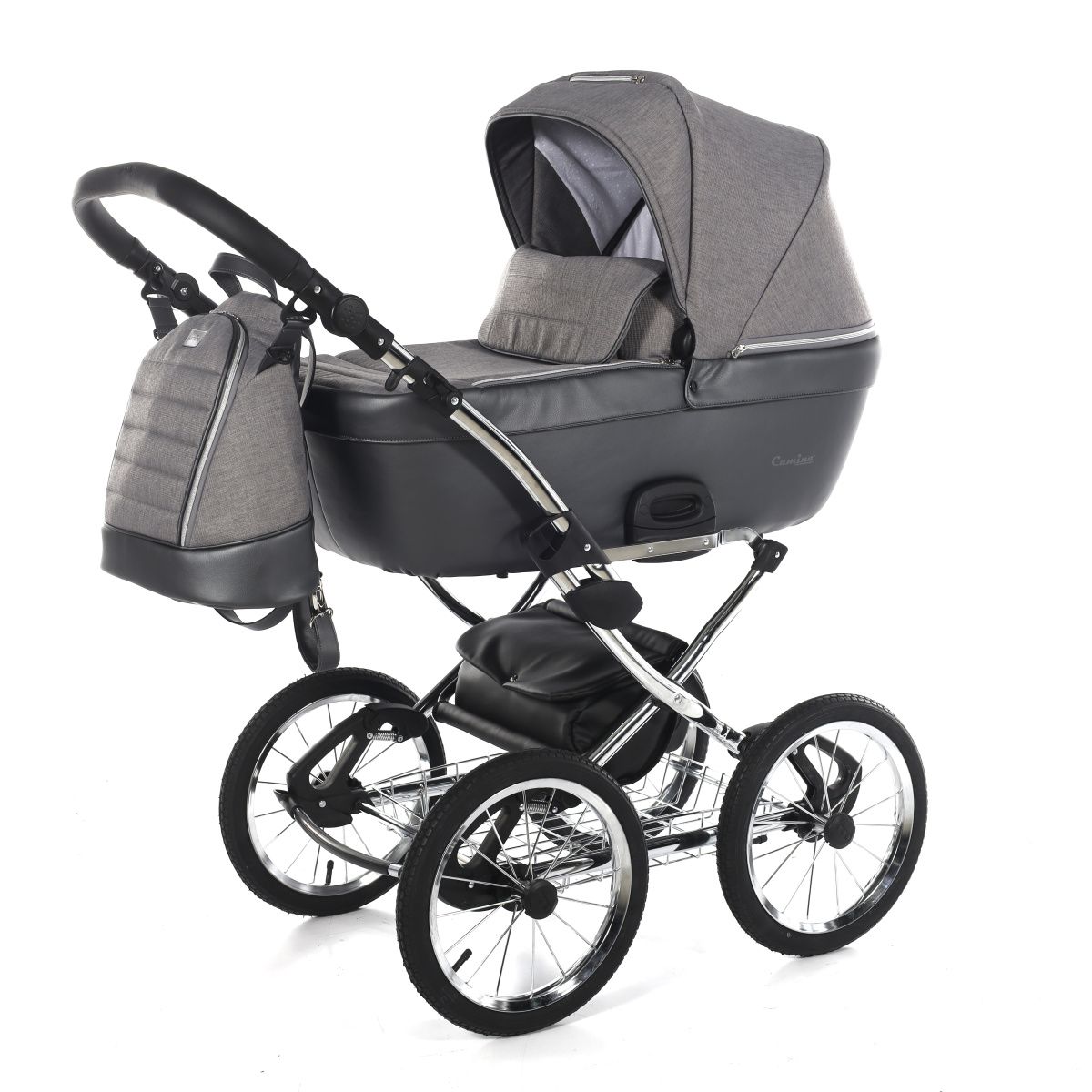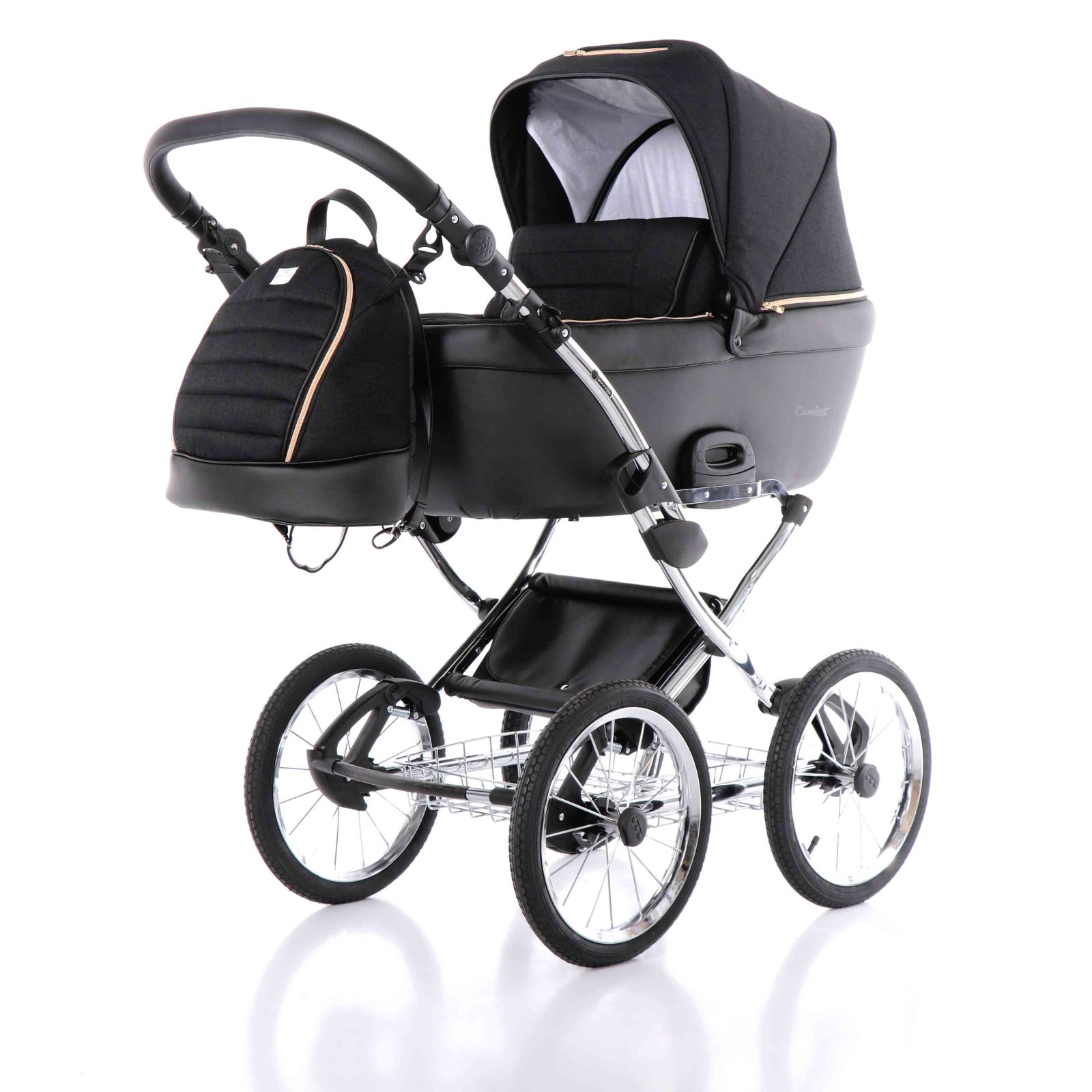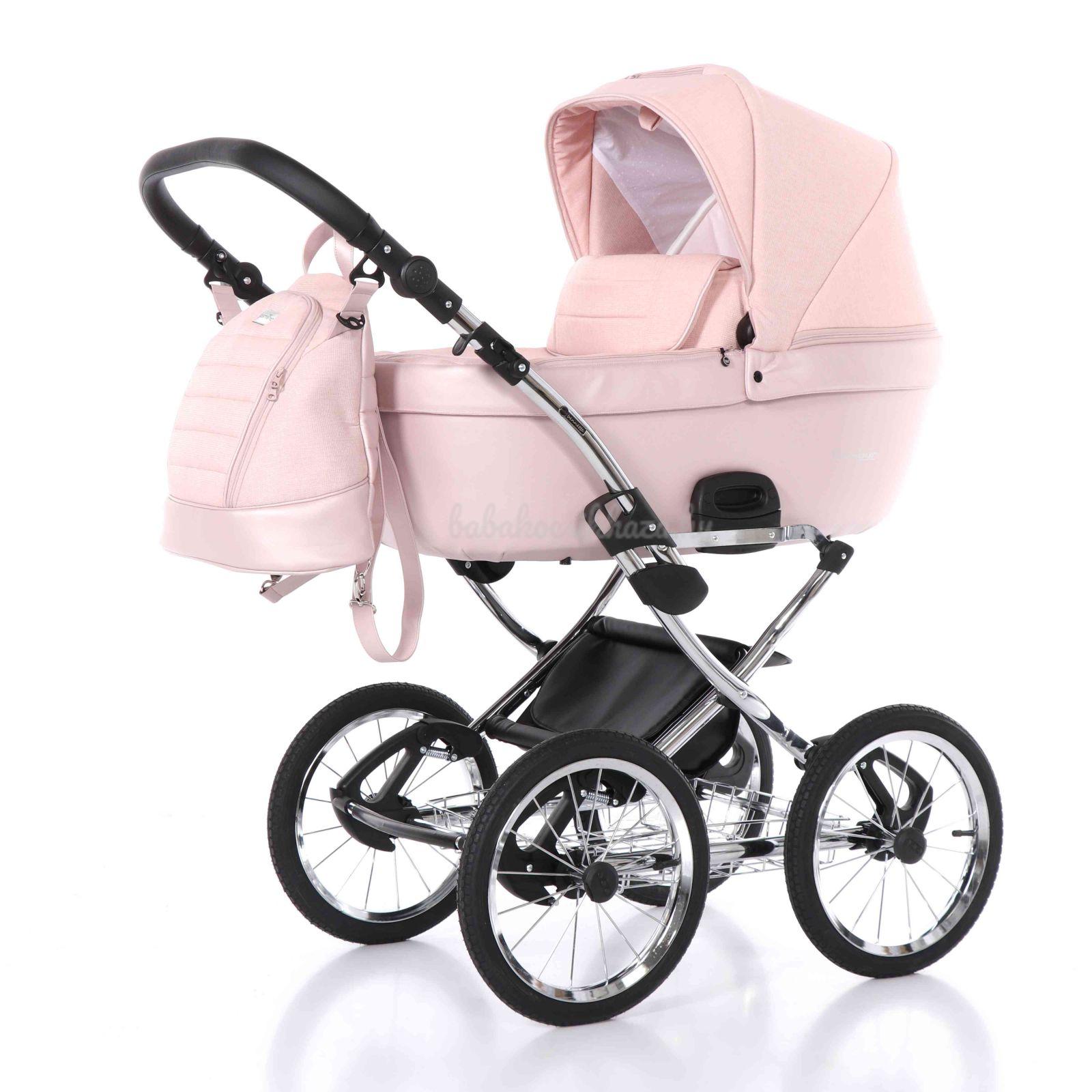 A babakocsi a tágas műanyag mózeskosárnak köszönhetően nagyon kényelmes a gyermekek számára.